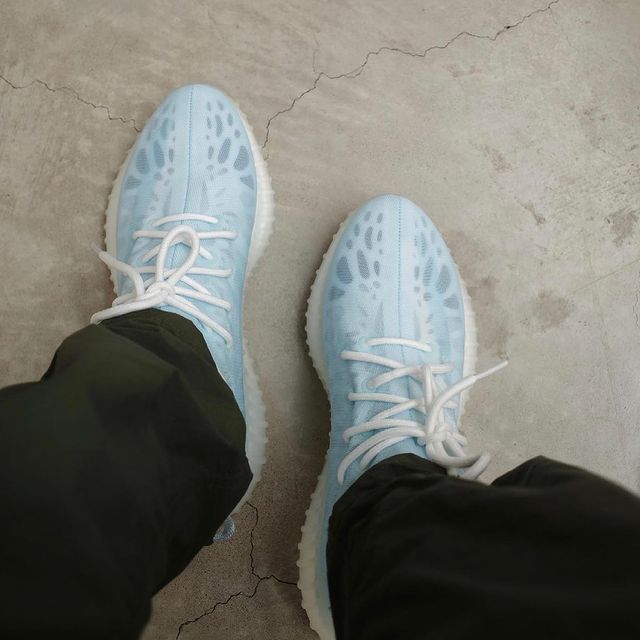 早在两个月前球鞋爆料账号 @yankeekicks 晒出 Yeezy Boost 350 V2 “Mono Ice” 上脚照,清新透明的鞋身搭配黑色袜子,整双鞋呈现灰黑质感,实在让小编瞬间解毒。