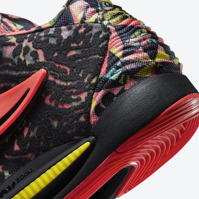 整双鞋设计方案与当年的 Kyrie 1 “Dream” 异曲同工,黑色的造型加上红、黄、蓝的细节点缀,造型格外吸睛。