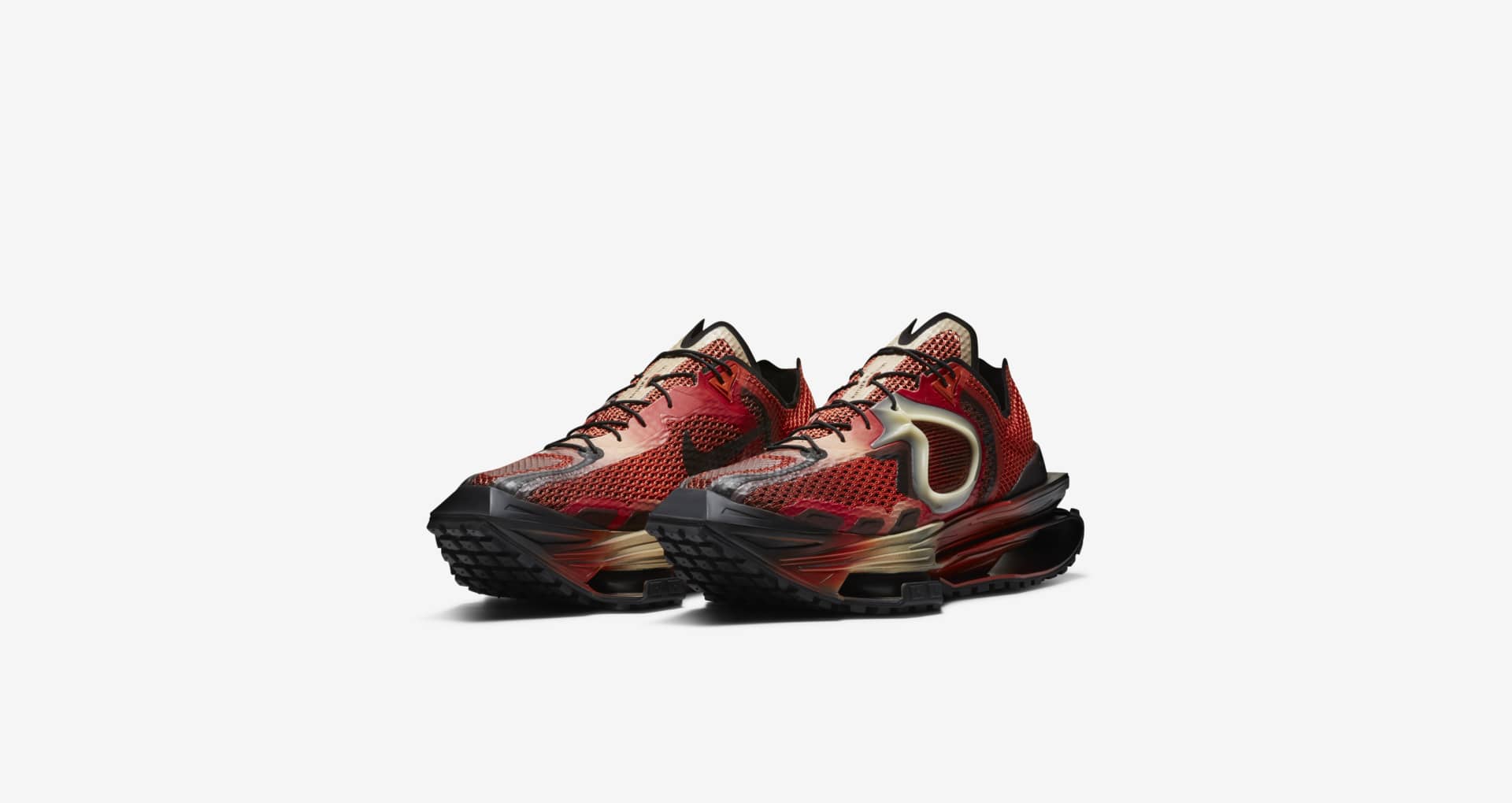 另一双 “Rust Factor” 整体就张扬了不少,鞋身大面积的红色添加入黑色和金色,同时设计成渐变效果,虽然效果吸睛,但搭配难度也直线上升。