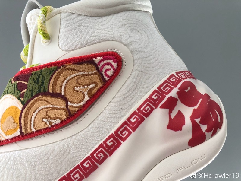 整双鞋以米白色为主调,鞋身点缀红色花纹,呈现出的视觉效果简直和传统汤面碗一模一样。