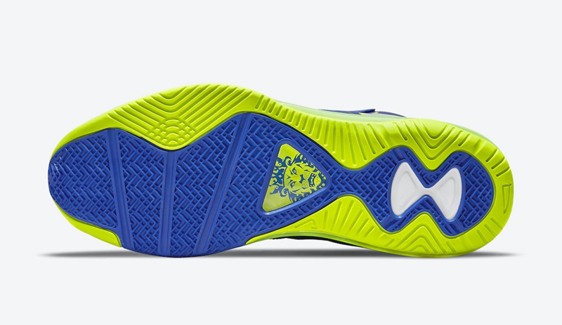 整体造型以蓝色为主调,并点缀荧光绿色细节,带来经典雪碧配色效果,十分清新百搭,同时更加丰富的鞋身层次。