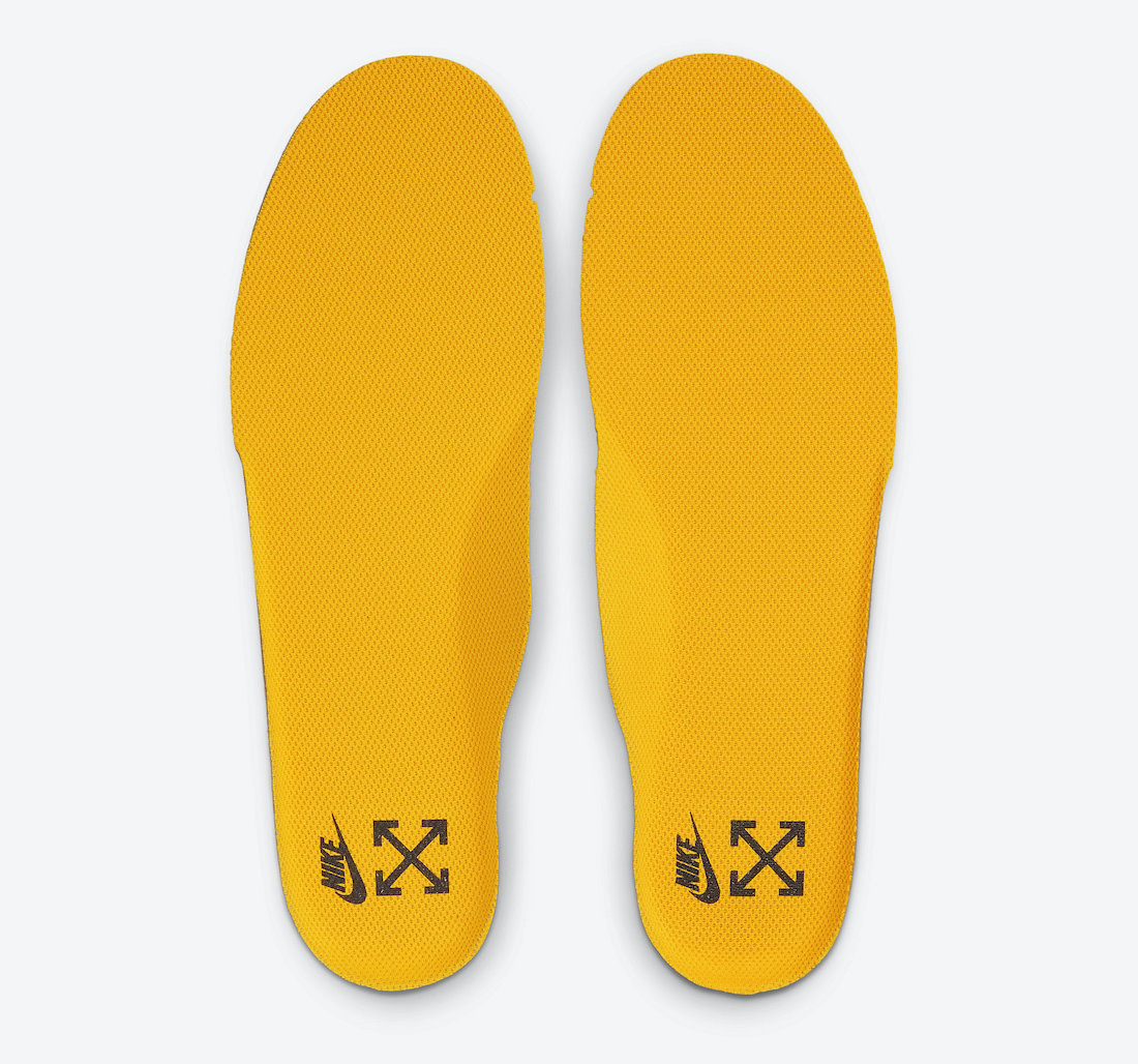 OFF-WHITE 联名极具辨识度的解构设计再加上醒目的黄色鞋面,鞋身的银色 Swoosh 彰显特殊身份。