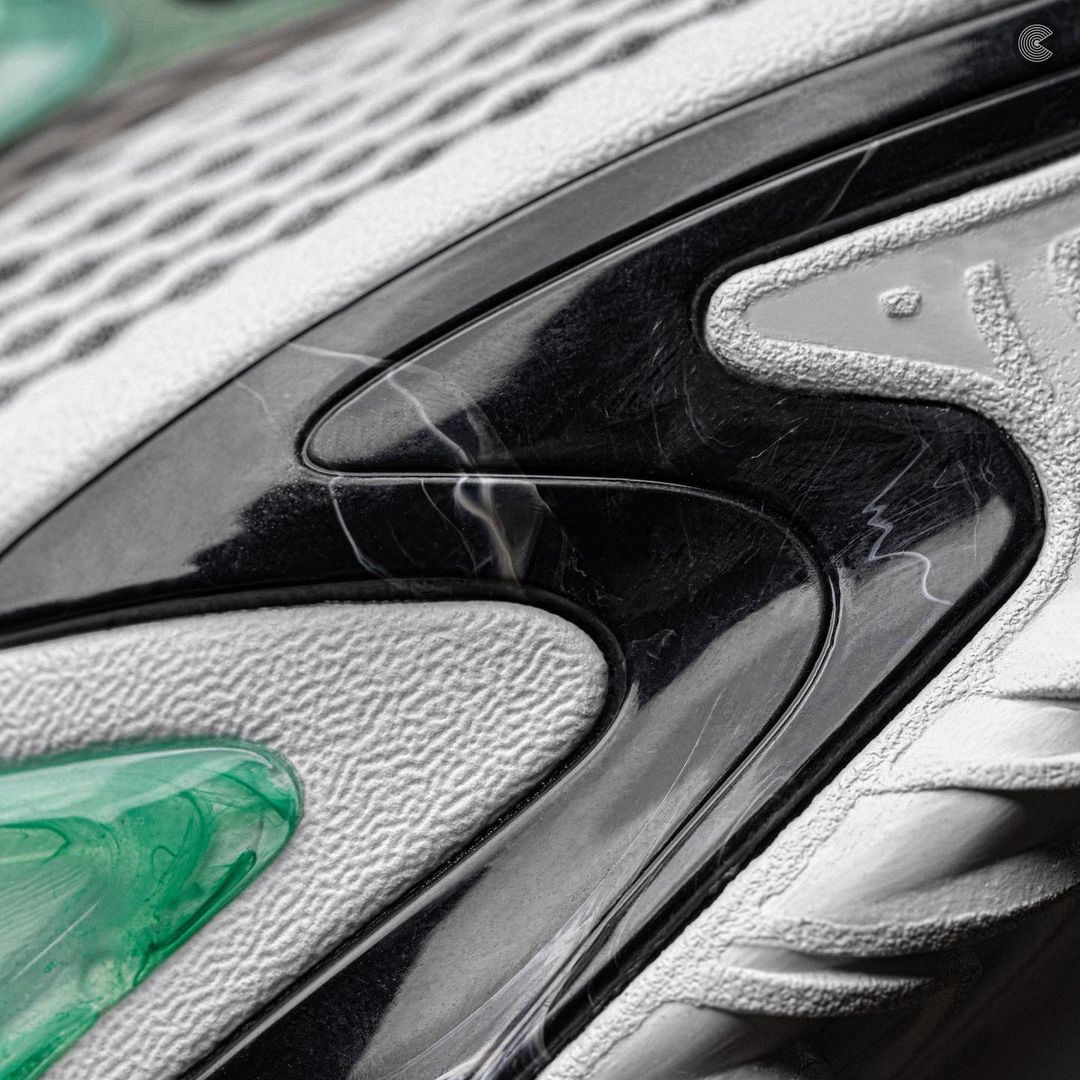 整双鞋延续了要疯系列的夸张造型,鞋面采用网布面料作为主体,保证鞋子的透气性。