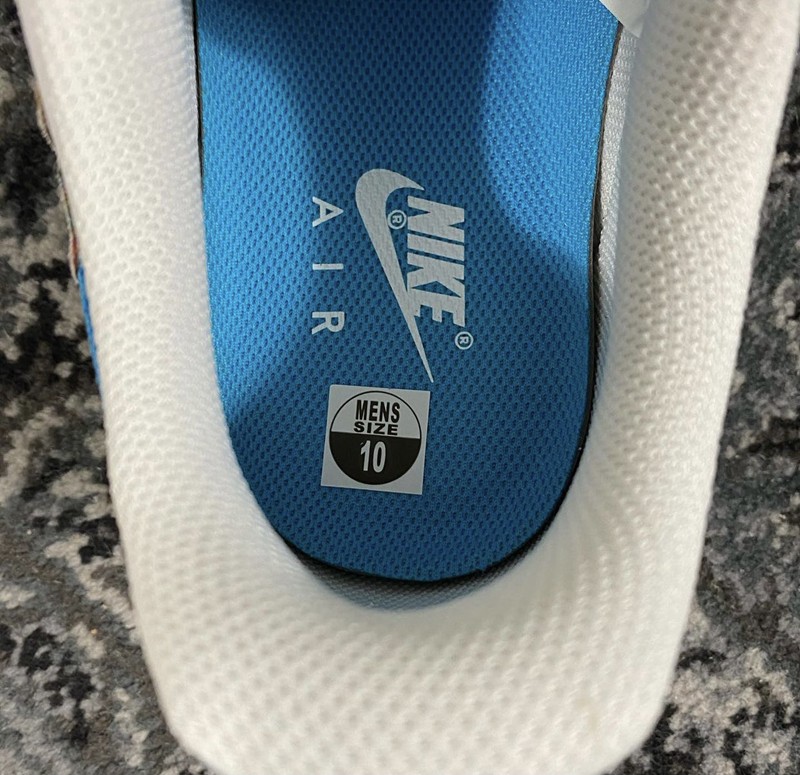 近日,一双以电影为主题的 Air Force 1 Low 释出实物图,鞋面以大面积白色荔枝皮为主,Swoosh 及后跟处采用蓝色麂皮打造,搭配在一起便是电影中乐一通球衣配色。