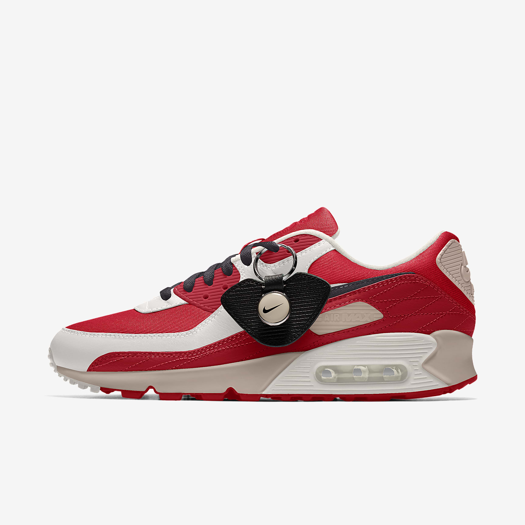 值得一提的是,全新 Nike By You Air Max 90 添加了镀铬皮革滚边,和可以定制字体的钥匙环,可谓是细节满满啊。