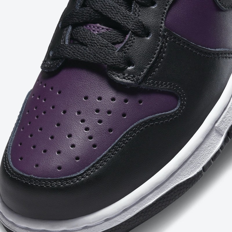 整双鞋的配色方案与 2010 年时发售几乎完全相似,虽然取消了鸳鸯设计,但都是以黑色作为鞋身框架,鞋面以及侧身部分填充深紫色。