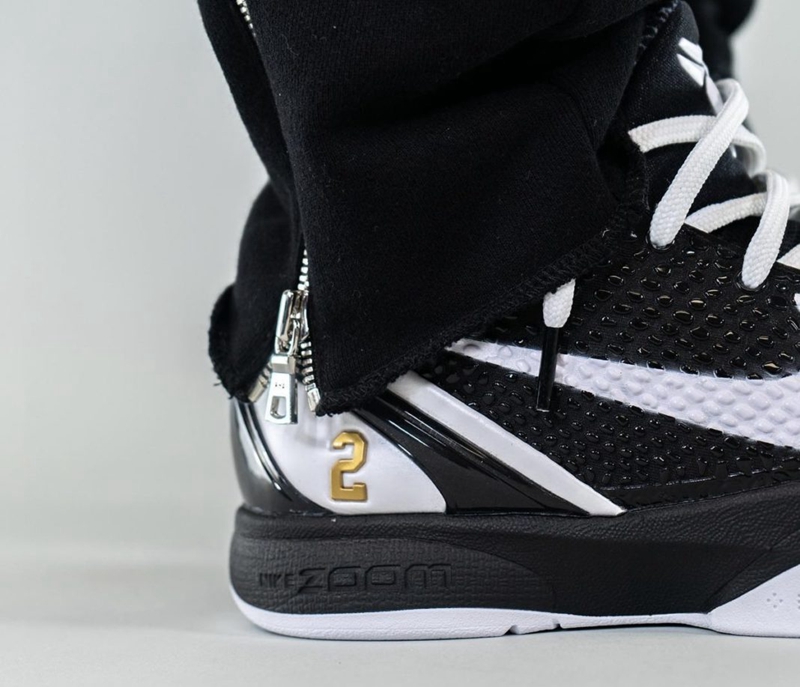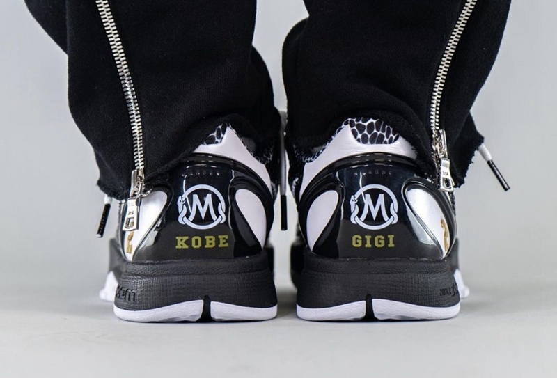 后跟 TPU 不仅印有曼巴体育基金会 Logo,还在左、右鞋上分别印了科比与女儿 Gigi 的名字,以此缅怀这位篮球巨星和爱女。