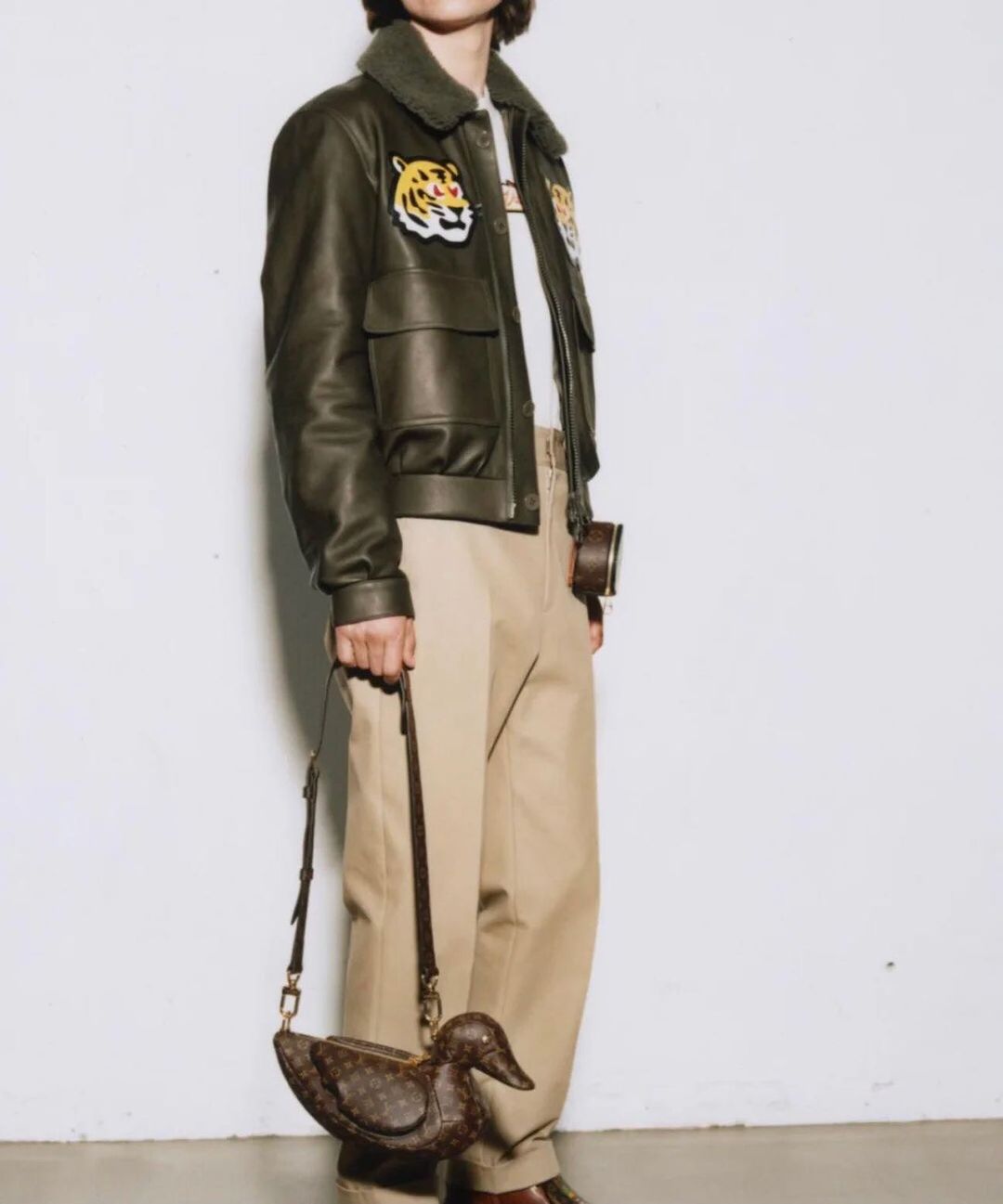 而最为抢眼的部分,还得是衣服、箱包上加入大量的鸭子、虎头元素。