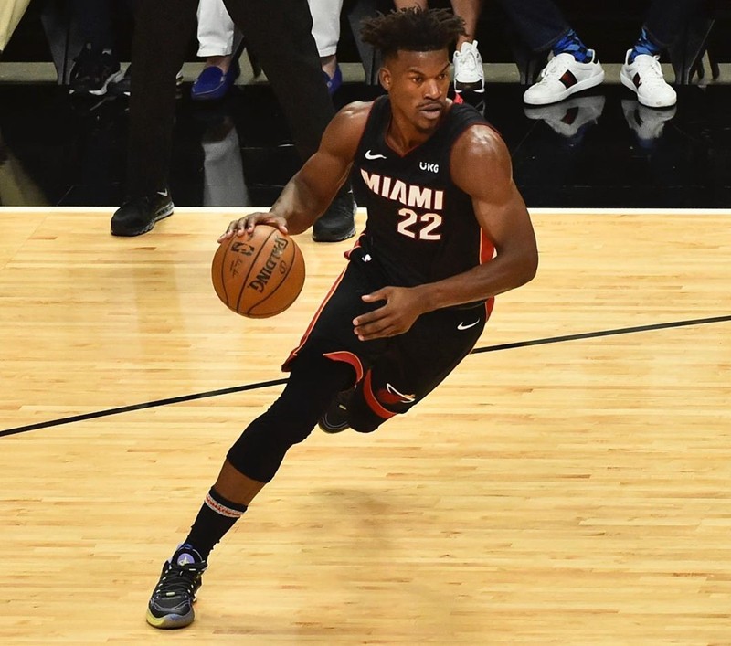鞋身采用黑色为主调打造,造型十分符合吉米·巴特勒硬朗的球风。