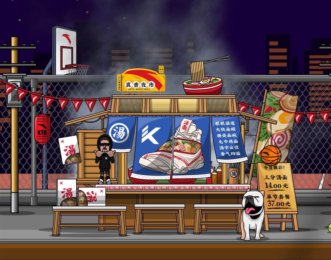 后跟、鞋舌分别以「汤」和「汤面」字样点明主题,同时玩了一把 KT 的姓名梗。