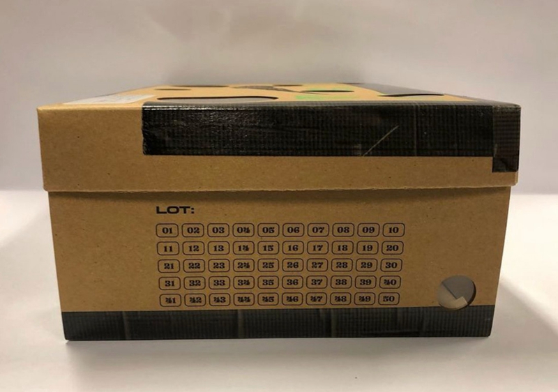 侧面还写有 01 — 50 的序号,可想而知 50 双鞋将使用同种造型鞋盒。