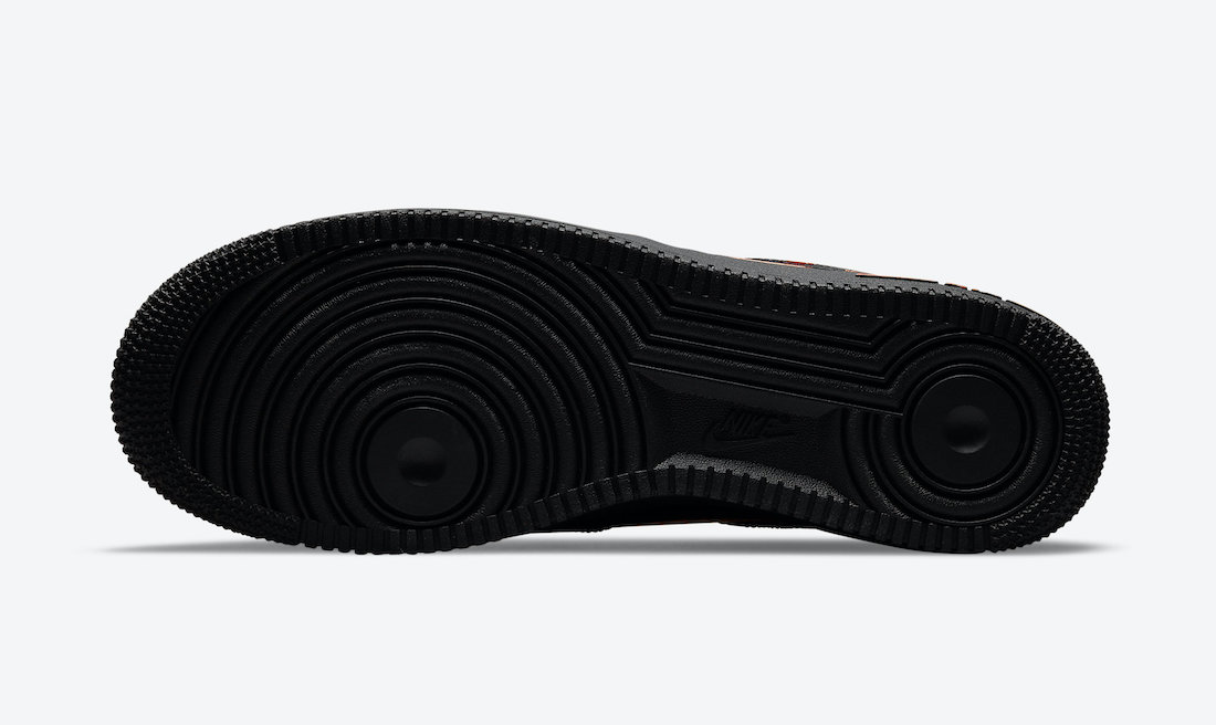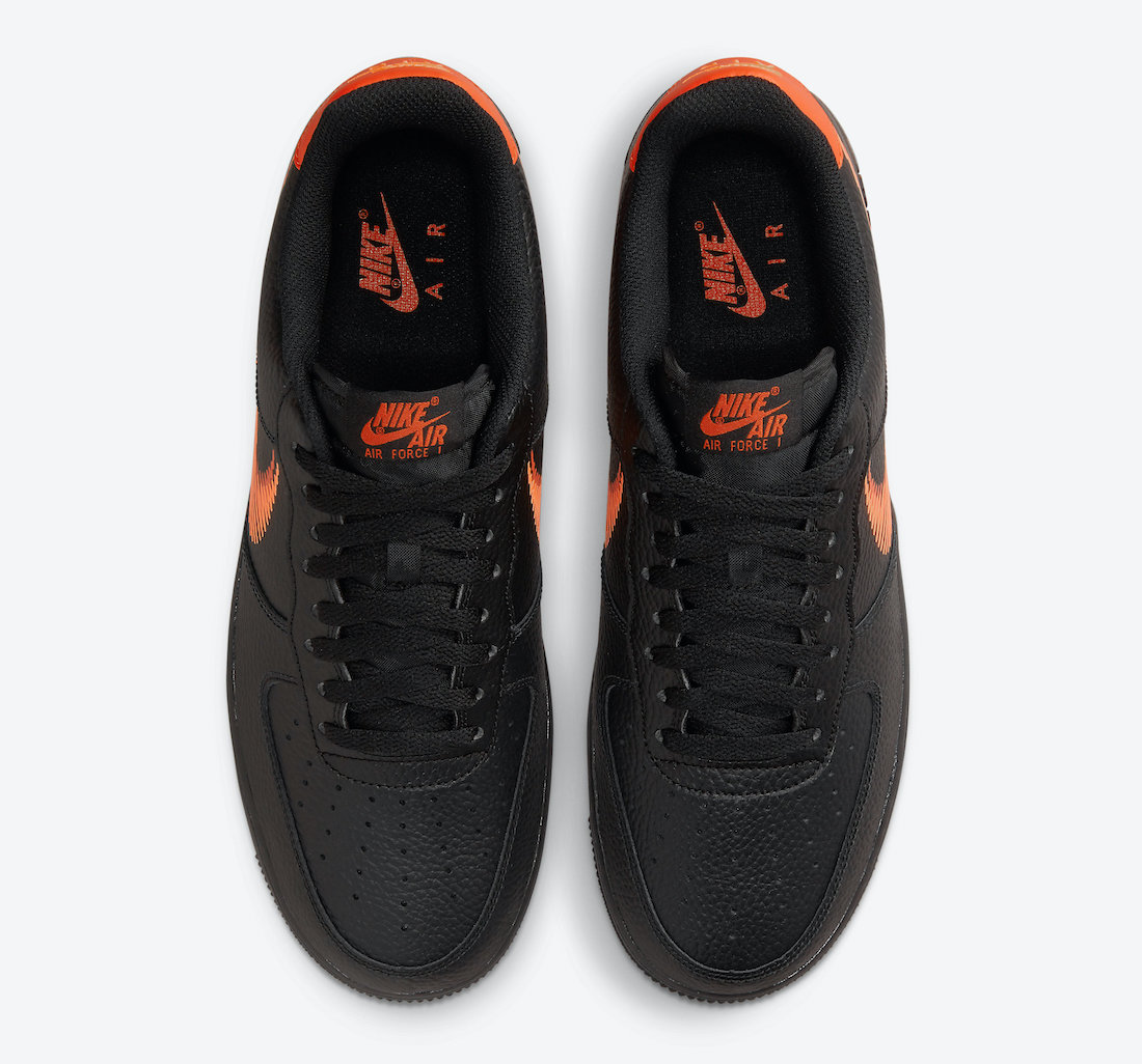 整双鞋的配色方案与 VLONE 联名完全相同,大面积的黑色鞋身中加入亮眼的橙色点缀,荔枝皮鞋面同样有着联名款的既视感,质感上加分不少。