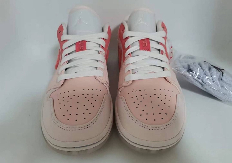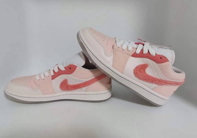 整双鞋在 Air Jordan 1 Low 的基础上,采用细腻皮革材质打造鞋身,并点缀三种不同深浅的粉色,造型十分甜美可爱。