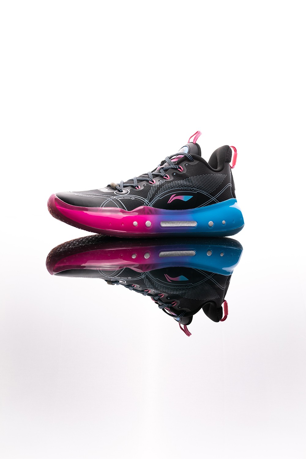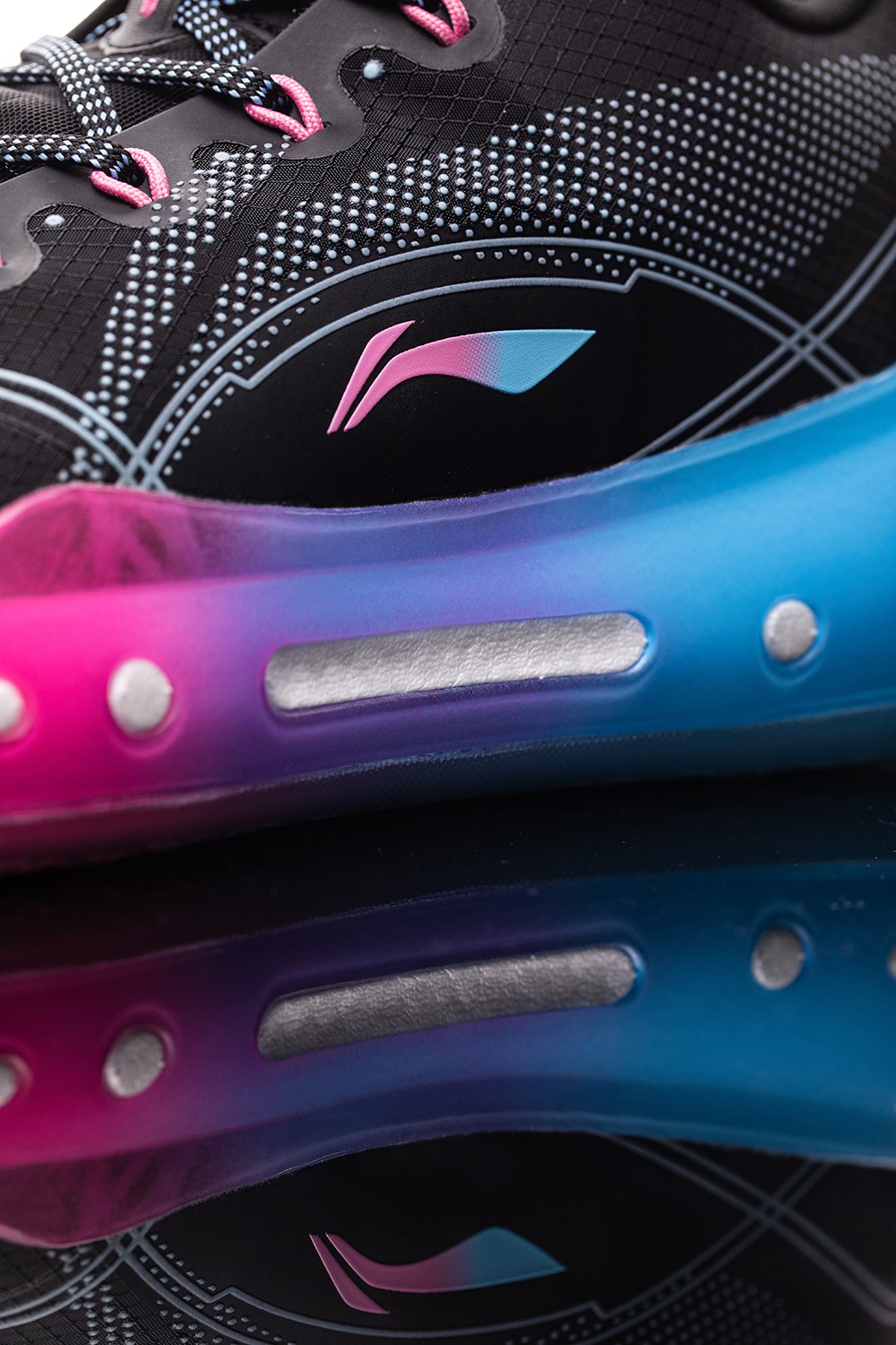 侧身外侧渐变效果的李宁 Logo,呼应中底的颜色设计。