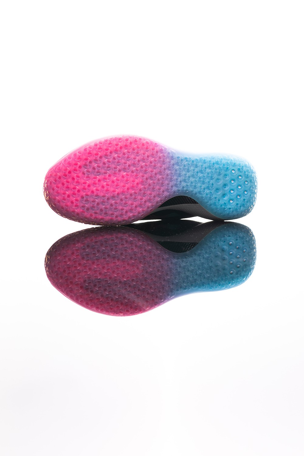 最为抢眼的当然还是蓝粉双色渐变的鞋底设计,同时左右脚鸳鸯装扮,简直不能再骚气。
