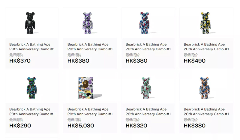除了几款亮眼配色的服饰外,还紧接着推出了全新的联名积木熊 BE@RBRICK 100% 公仔盲盒,一经登场也迅速售罄,目前二级市场也出现了炒卖的迹象,最贵的款式已经达到了 ¥323 元。