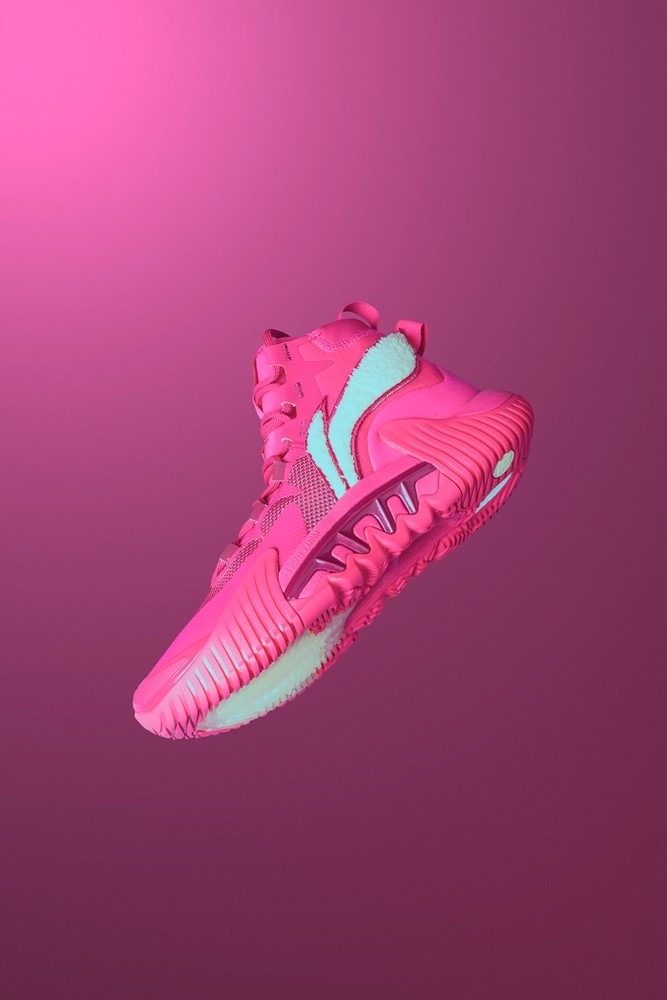 通体采用草莓熊标志性的粉红色调,与这款夸张又凶悍的鞋型结合,带来极为独特的视觉效果。