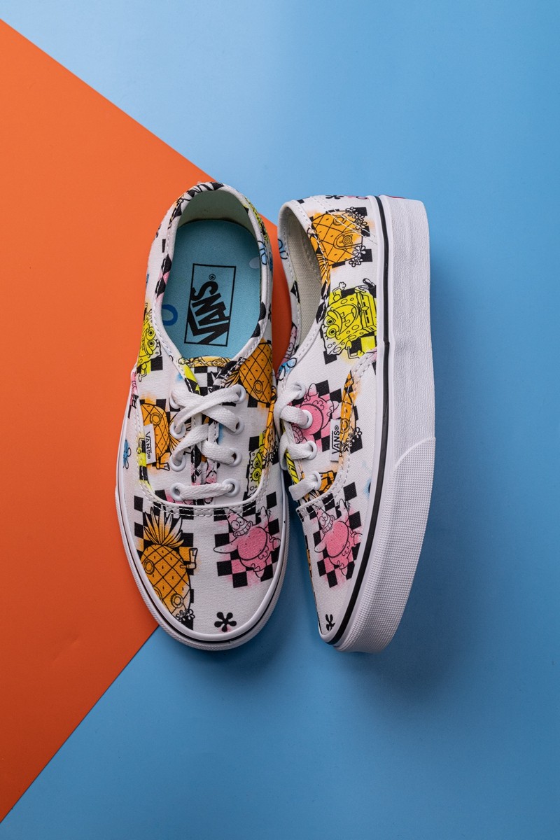 《海绵宝宝》与 Vans 合作的 5 双经典鞋款中,小编最喜欢的就是这双 Authentic。