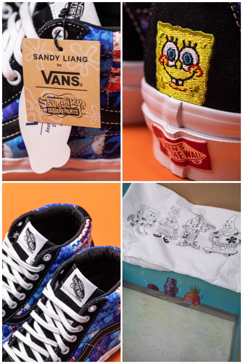 另一款则以海绵宝宝的好友,身兼科学家、探险家及发明家的松鼠珊迪为灵感,卡通形象出现在鞋身后跟位置。
