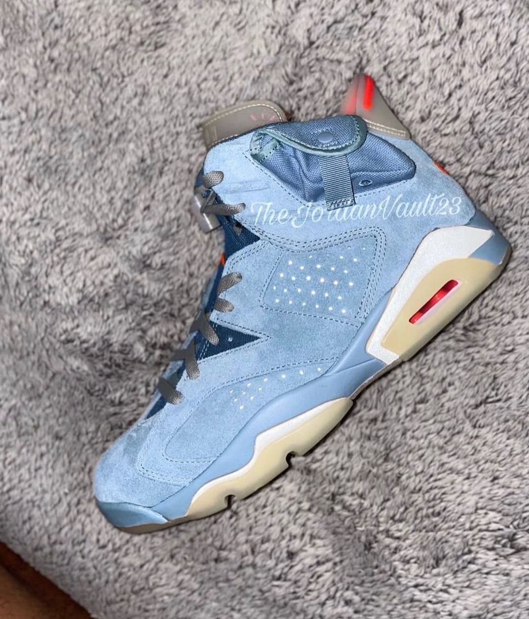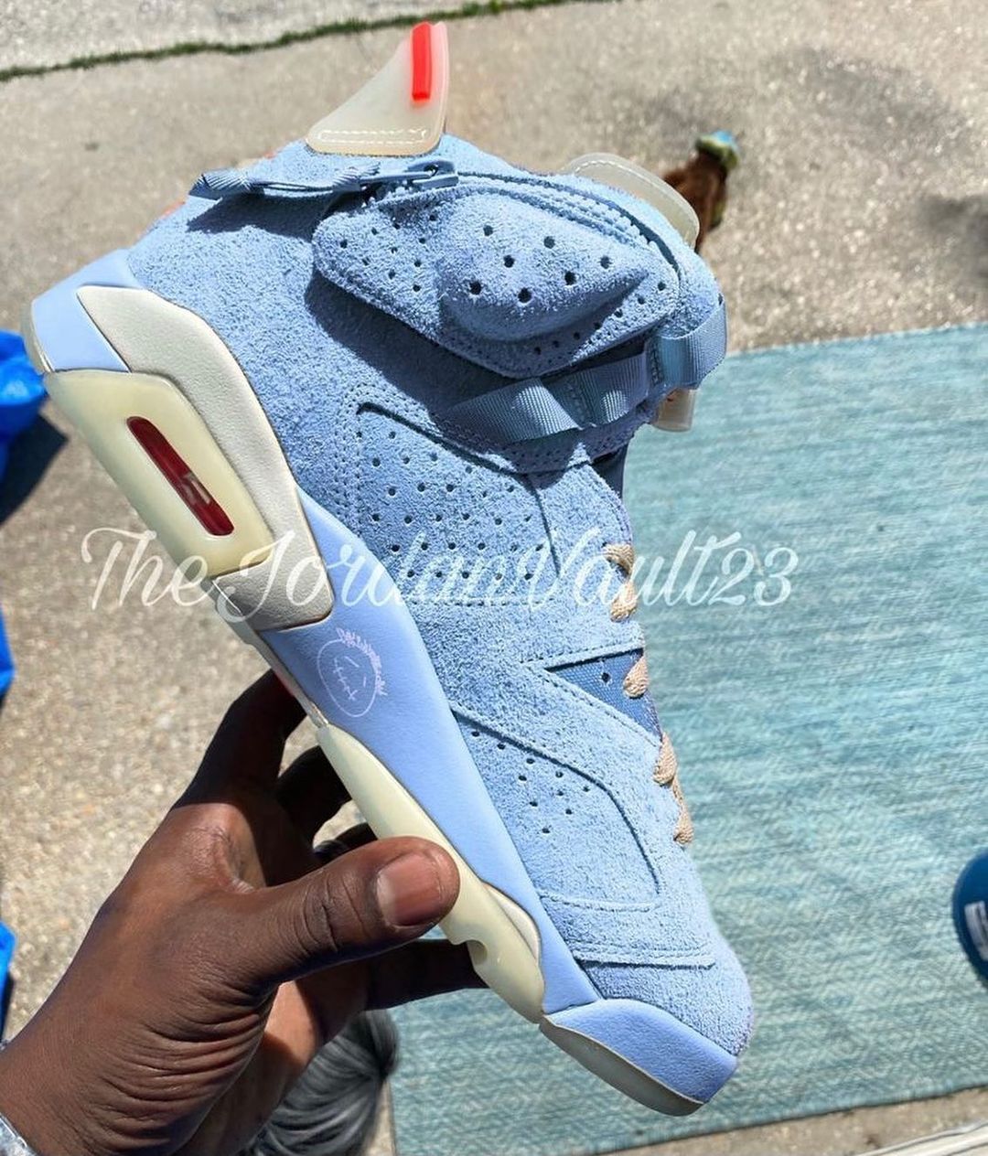 昨天,2.0 版本的 TS x AJ6 迎来全新配色曝光,由海外知名曝料账号 thejordanvault23 率先晒出实物,清爽的视觉冲击让人难以抗拒,海外许多网友声援一定要市售。