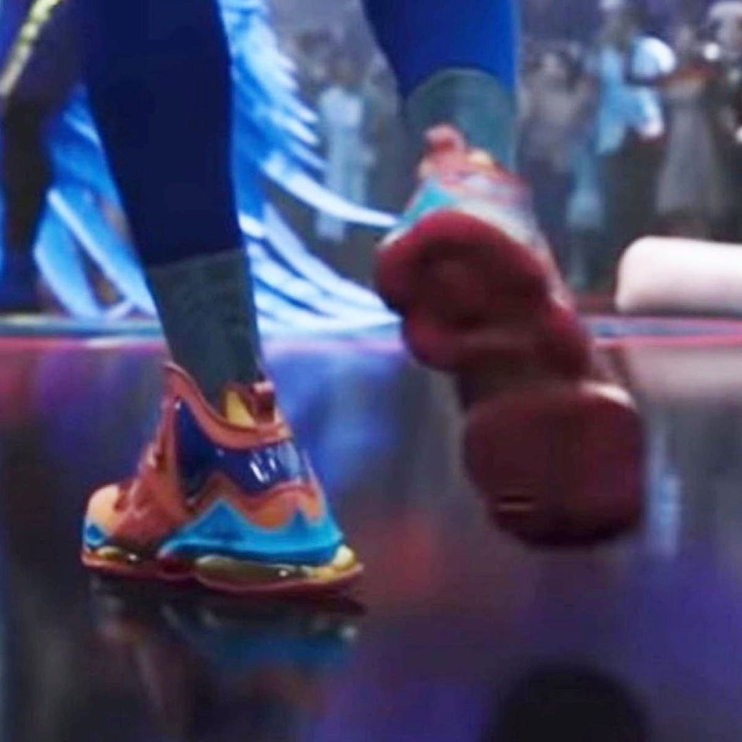 从预告片的截图中可以看到,整双鞋的配色格外花里胡哨,和电影中球衣搭配得非常完美。