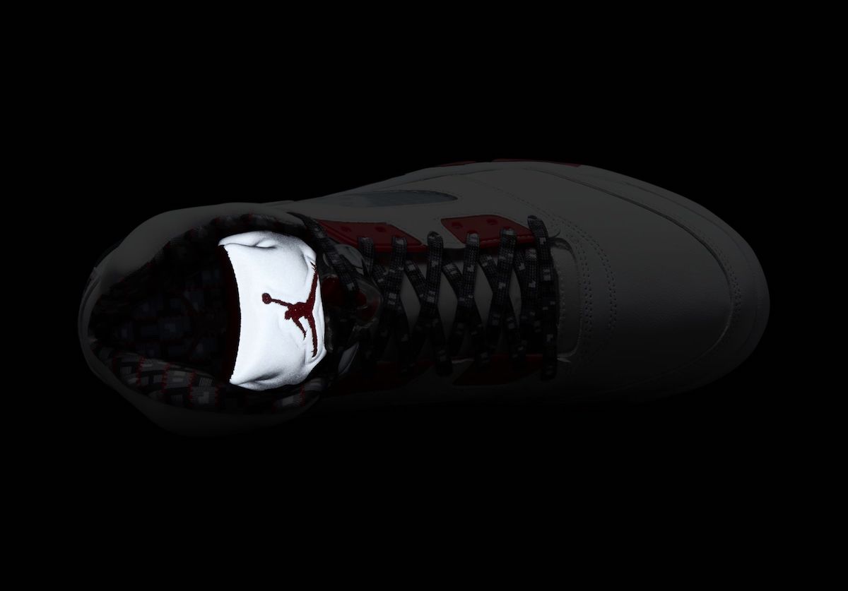 Air Jordan 5 鞋身侧面标志性的网眼开窗和后跟都能看到 Quai 54 的 Logo,鞋舌和内衬部位点缀独特印花,也是今年 Quai 54 全新元素。