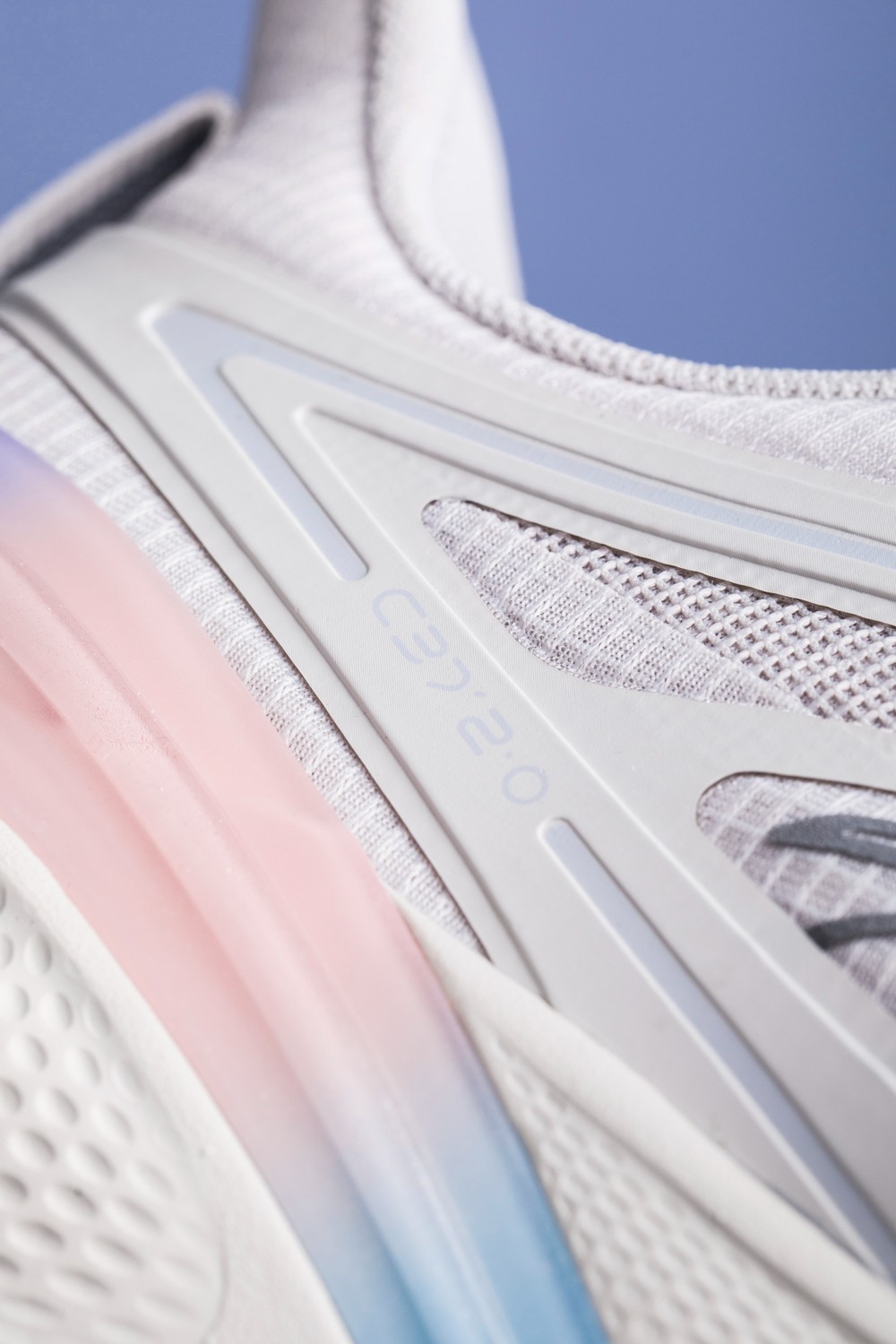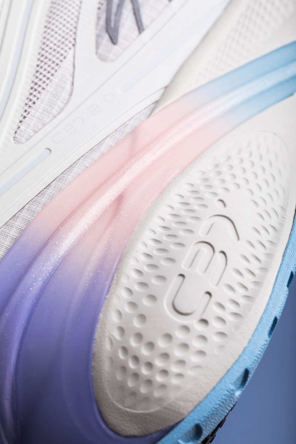 灰 + 渐变配色,蓝色外底和渐变 TPU 带来清新色调,看起来更加个性亮眼。