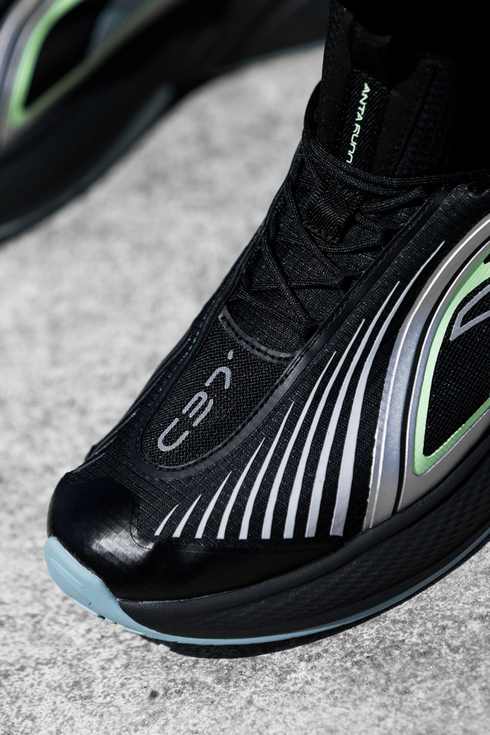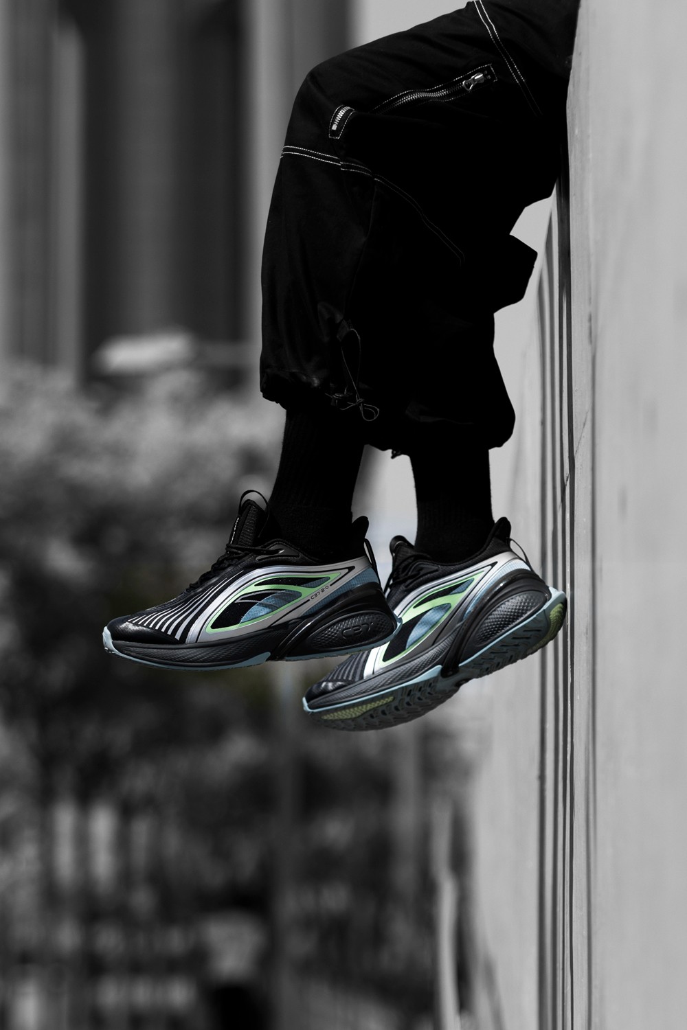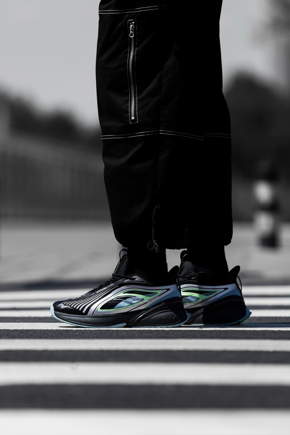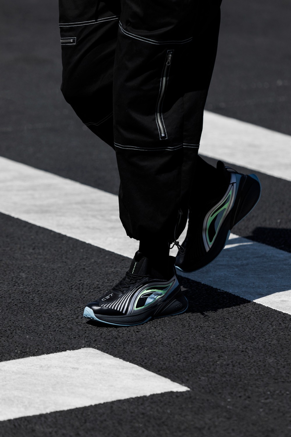 主打黑银配色科技感十足,上脚还颇有几分机能感。