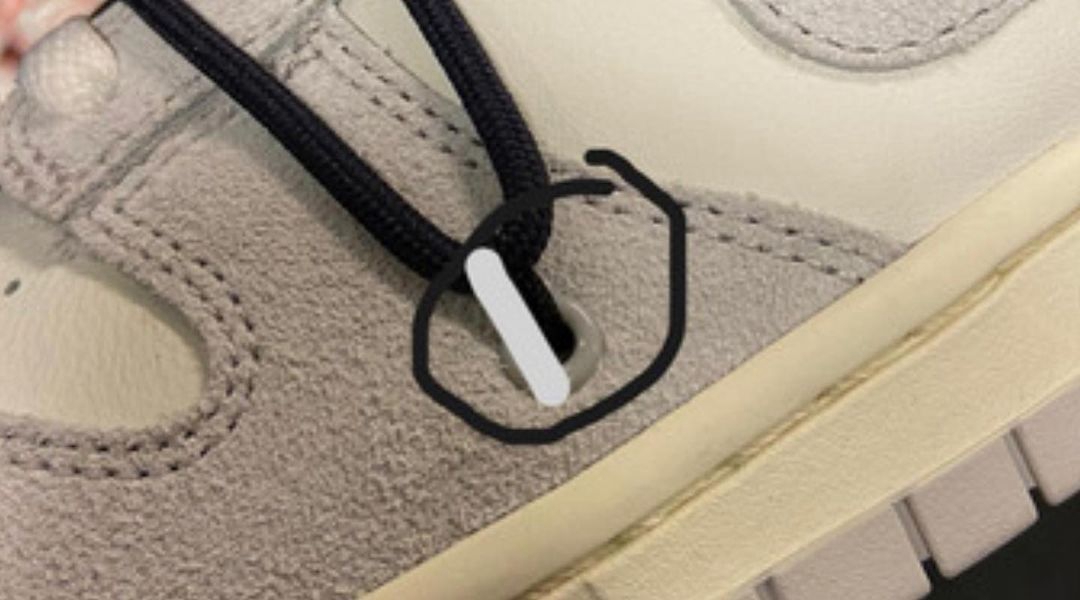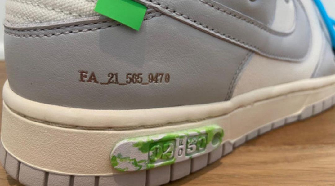 内侧同样采用银色字体缀以极具 Virgil 设计风格的解构字样,原汁原味,防盗扣标注的字样和中底标志都证明了「THE 50」的身份。