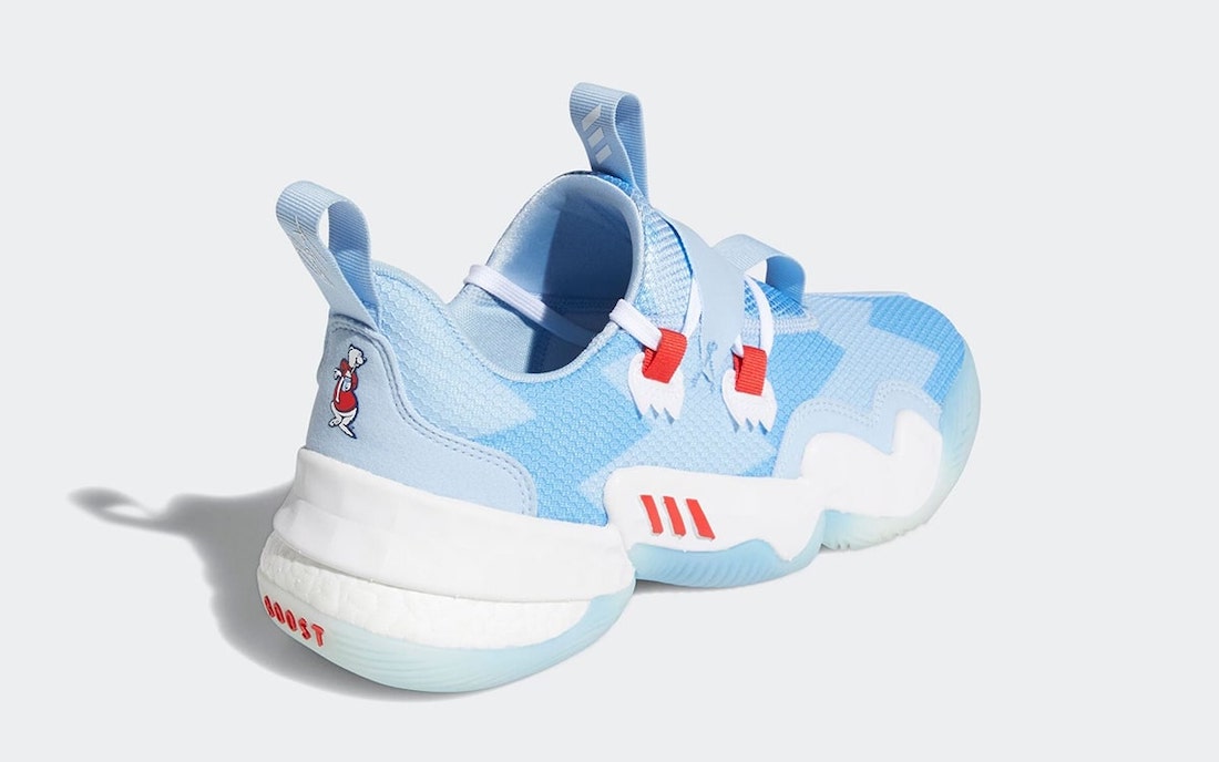 鞋面使用冰蓝色调打造,致敬特雷·杨 “Ice Trae” 绰号。