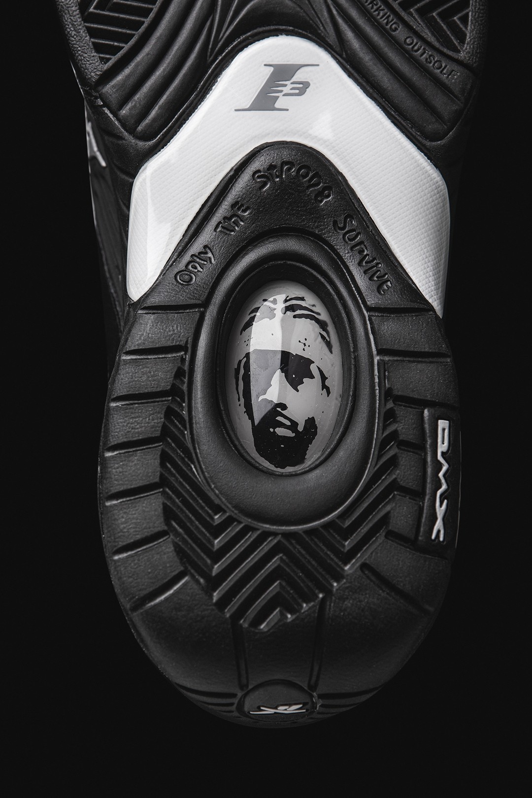 后跟镂空处搭载有 DMX 缓震科技,并妆点了 Iverson 经典造型头像和 Only The Strong Survive(只有强者才能生存)字样,也呼应了艾弗森身上的一处纹身。