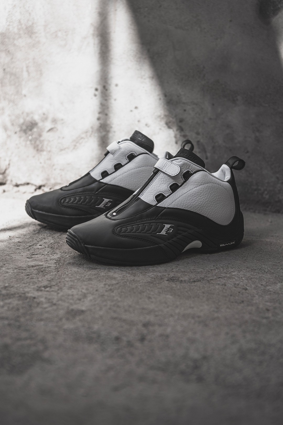 整双鞋采用黑白双色拼接打造,与 20 年前艾佛森跨过泰伦卢时穿着的球鞋一模一样,配色虽然简约但不失层次感。