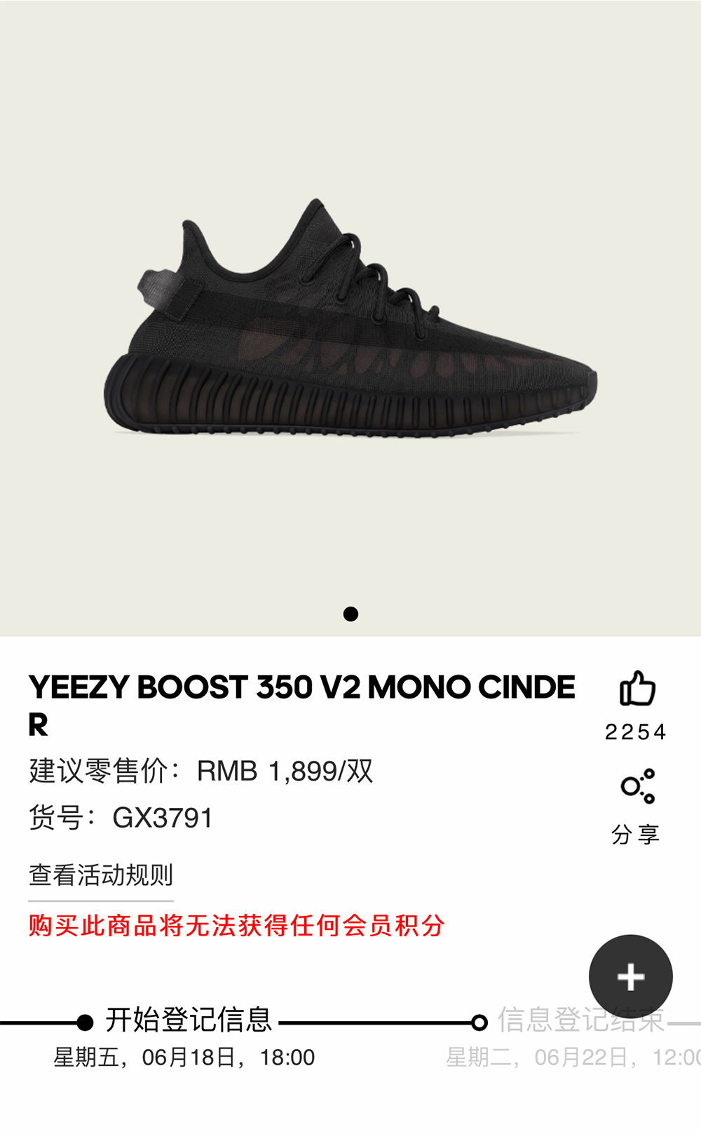 6 月 22 日 14 点开始预约,中签的小伙伴需要 6 月 24 日前往线下指定店铺购买。