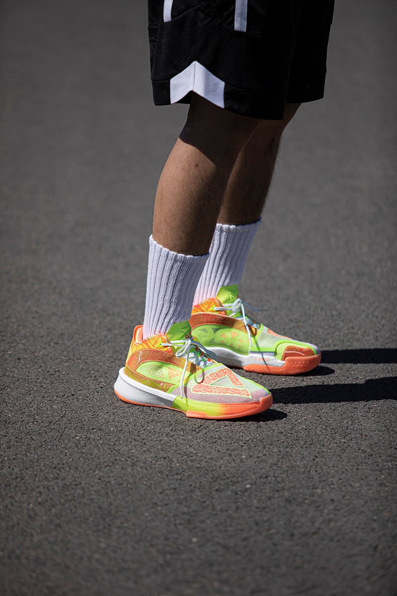 眼前这款刚刚发售的 “夏日派对” 配色,将泳池、柠檬茶、波浪、鸡尾酒等清爽元素注入鞋身,不少小伙伴也开玩笑说像是「冰工厂」配色,无疑是近期最具话题性的实战球鞋。