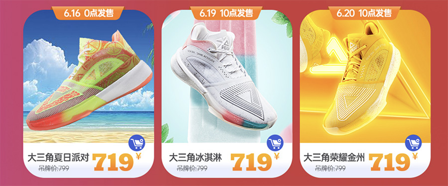 匹克态极「超轻大三角」不仅将在这两天迎来热门鞋款补货,讨喜的夏日新品也释放出夺目的活力气氛!