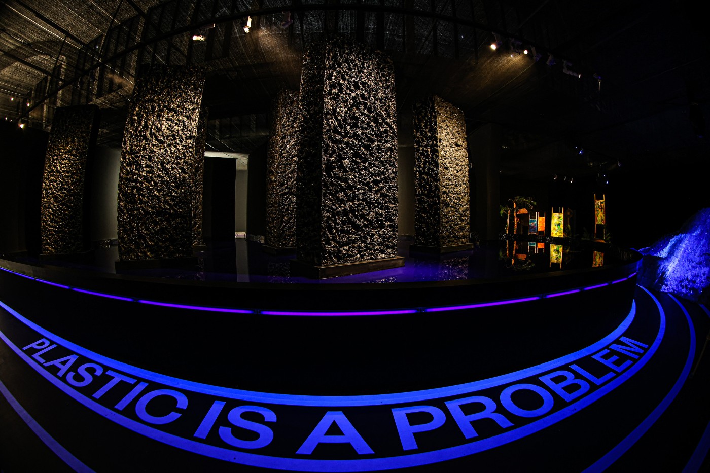 “跑道” 即是观展动线,围绕中央一片静谧的“海洋”,艺术家们的作品穿插其中,从不同维度表达了艺术家们对于海洋环境的关怀。