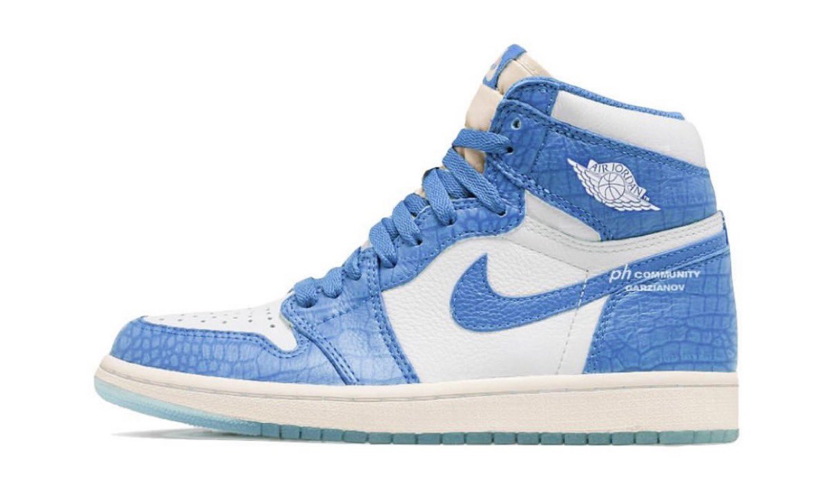 但最新效果图显示,仅有北卡蓝和白红两款配色,鞋面带有鳄鱼纹理,但并没有金星设计。