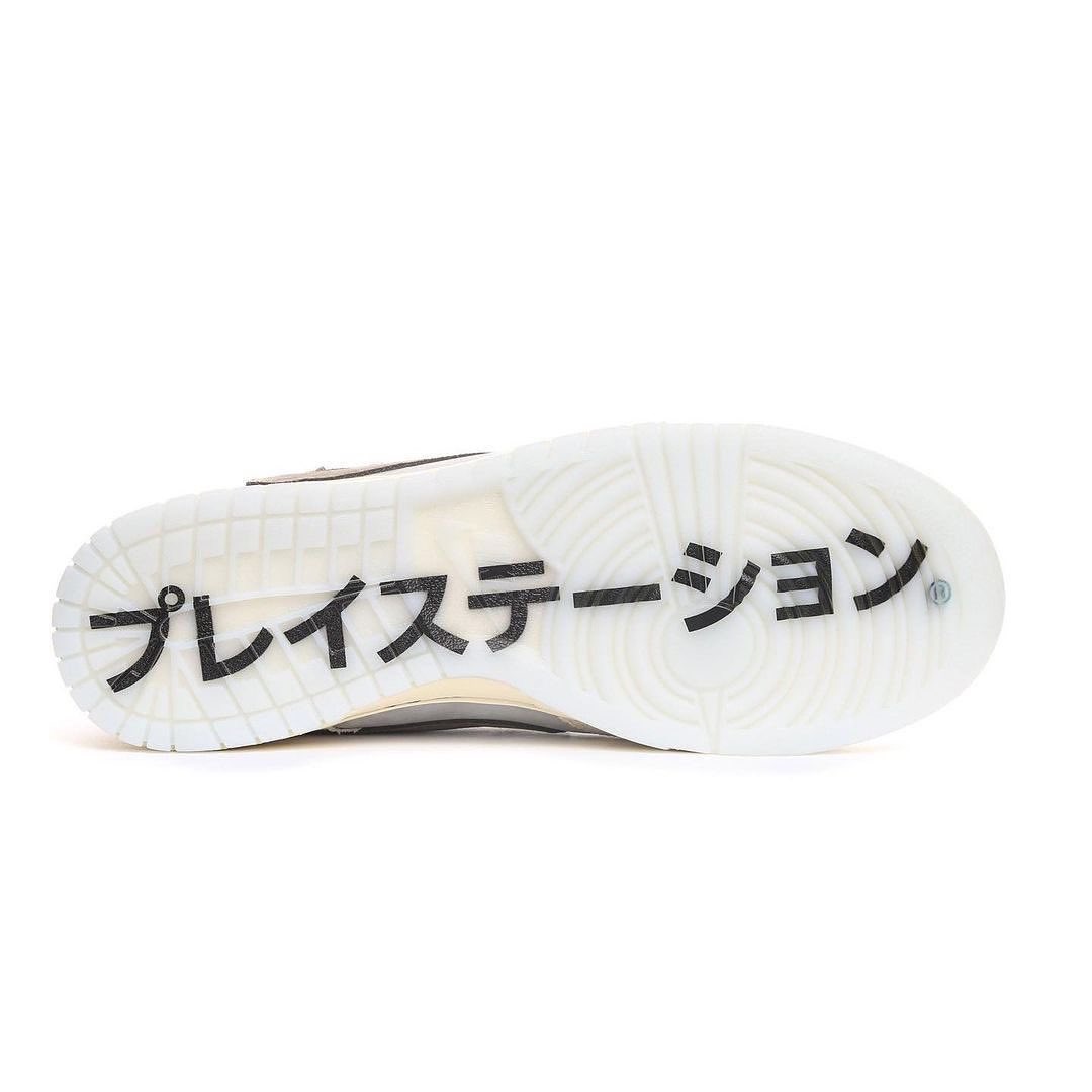 左右脚的乳白色水晶外底上分别有英文和日文的 “PlayStation” 字样。
