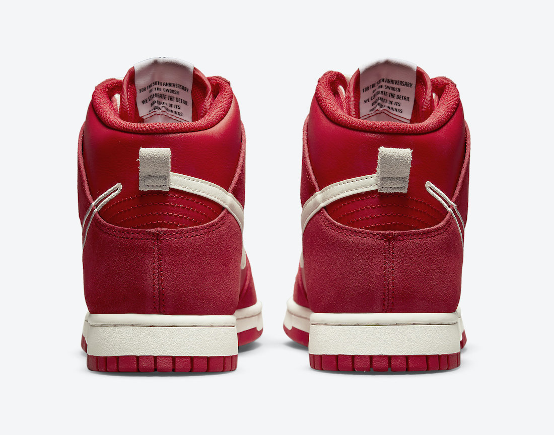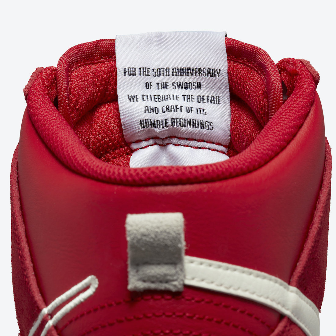 鞋身外侧 Swoosh Logo 采用红色为主白色包边的设计,内侧为纯白色 Swoosh,细节设计十分独特。