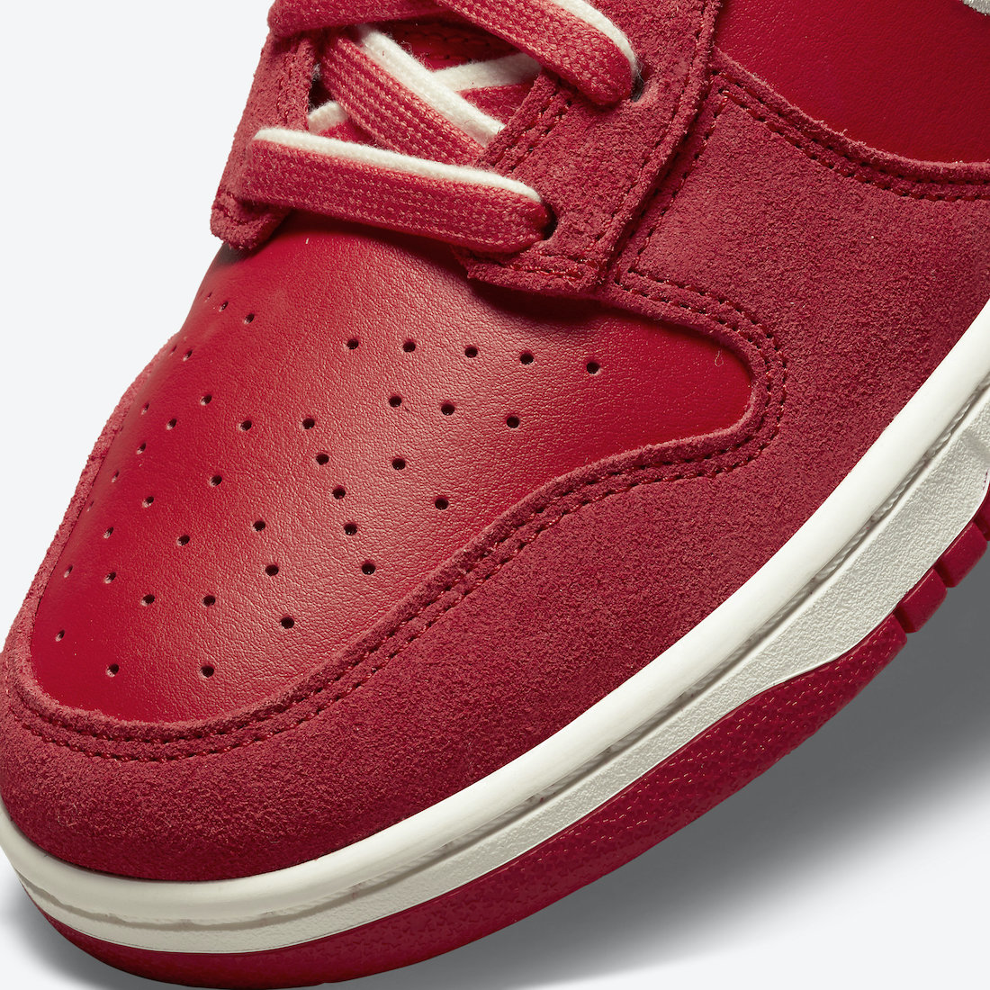 鞋面以红白配色呈现,麂皮和皮革拼接制成,整体层次丰富十分亮眼。