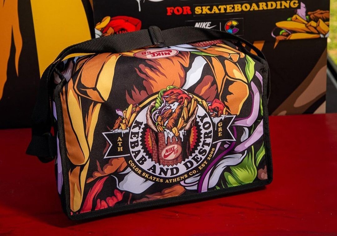 此次全新联名 Nike 携手雅典滑板店铺 Color Skates,以经典美食 “Kebab” 为设计灵感。