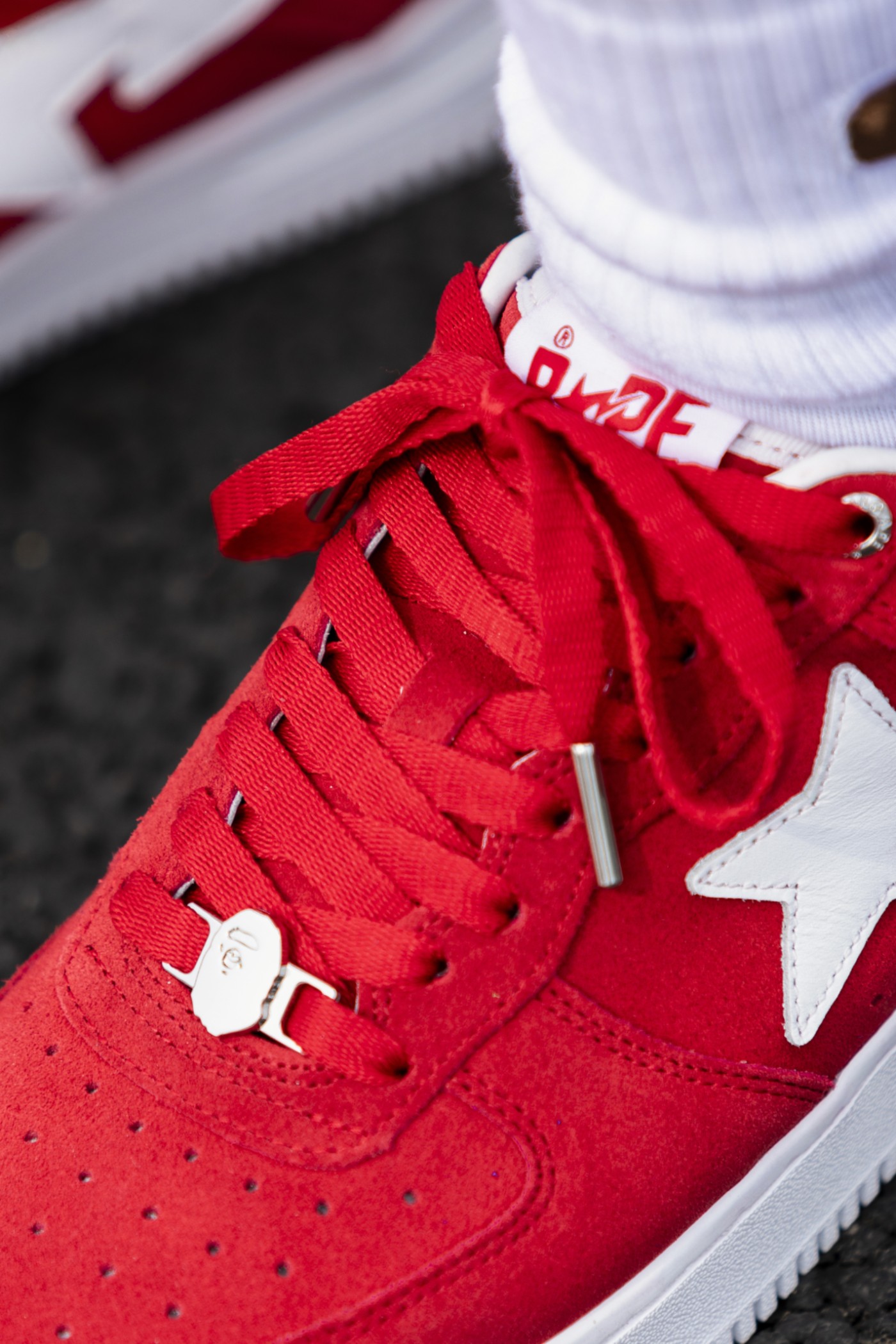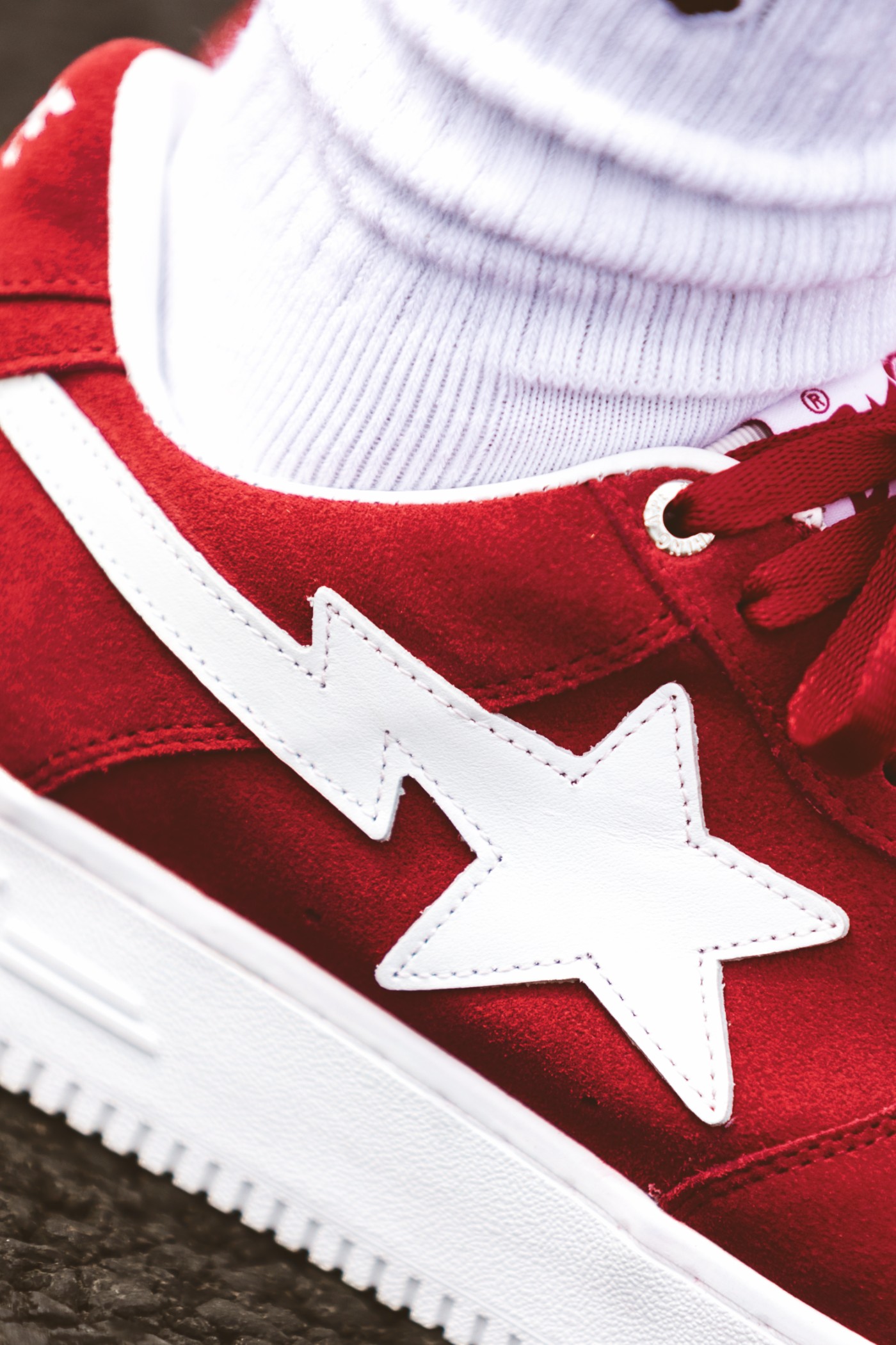 红色麂皮搭配白色星星 Logo 和鞋底,为鞋款增添几分清爽。