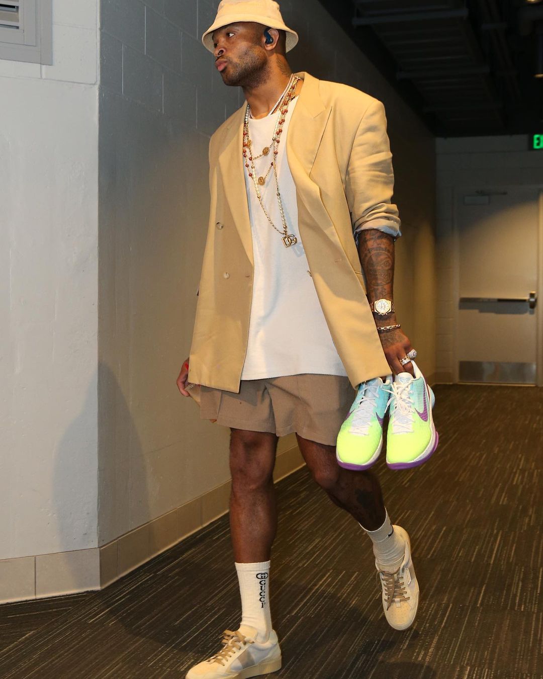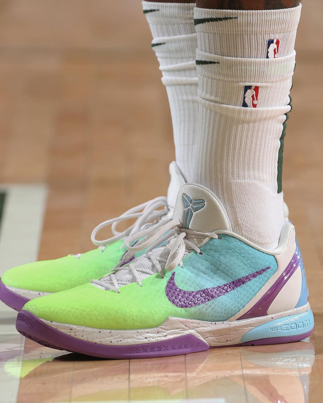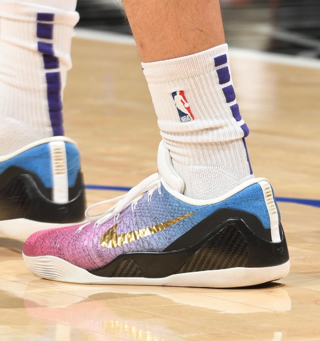 首先不得不提还是「鞋王」塔克,各种 PE 配色看花眼,作为科比门徒的德文·布克也有不少 PE 配色上脚。