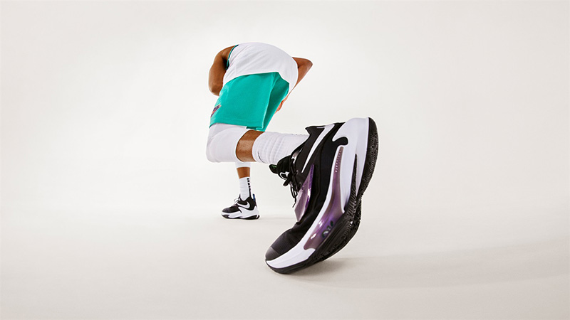 整体采用低帮造型示人,倒钩元素出现在鞋帮外侧。鞋面额外增加的魔术绑带跟 KD14 颇为相似,同时与上翻中底造型及 TPU 防侧翻框架相呼应,营造出向后侧延伸的速度感。