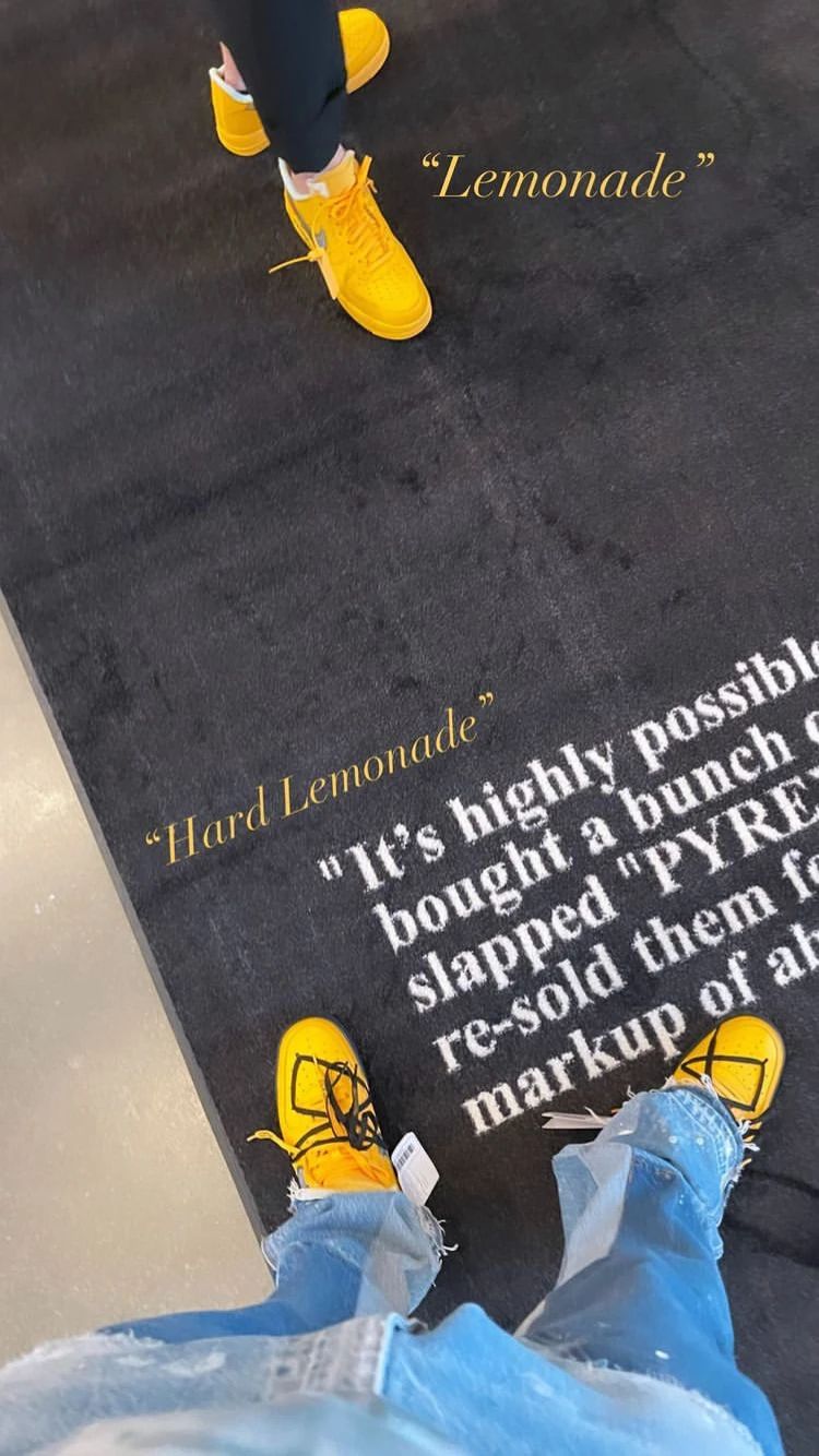 一袭亮眼的黄色装扮,同时鞋身多处细节带有 Virgil 的亲手定制,詹皇这波又装到了!