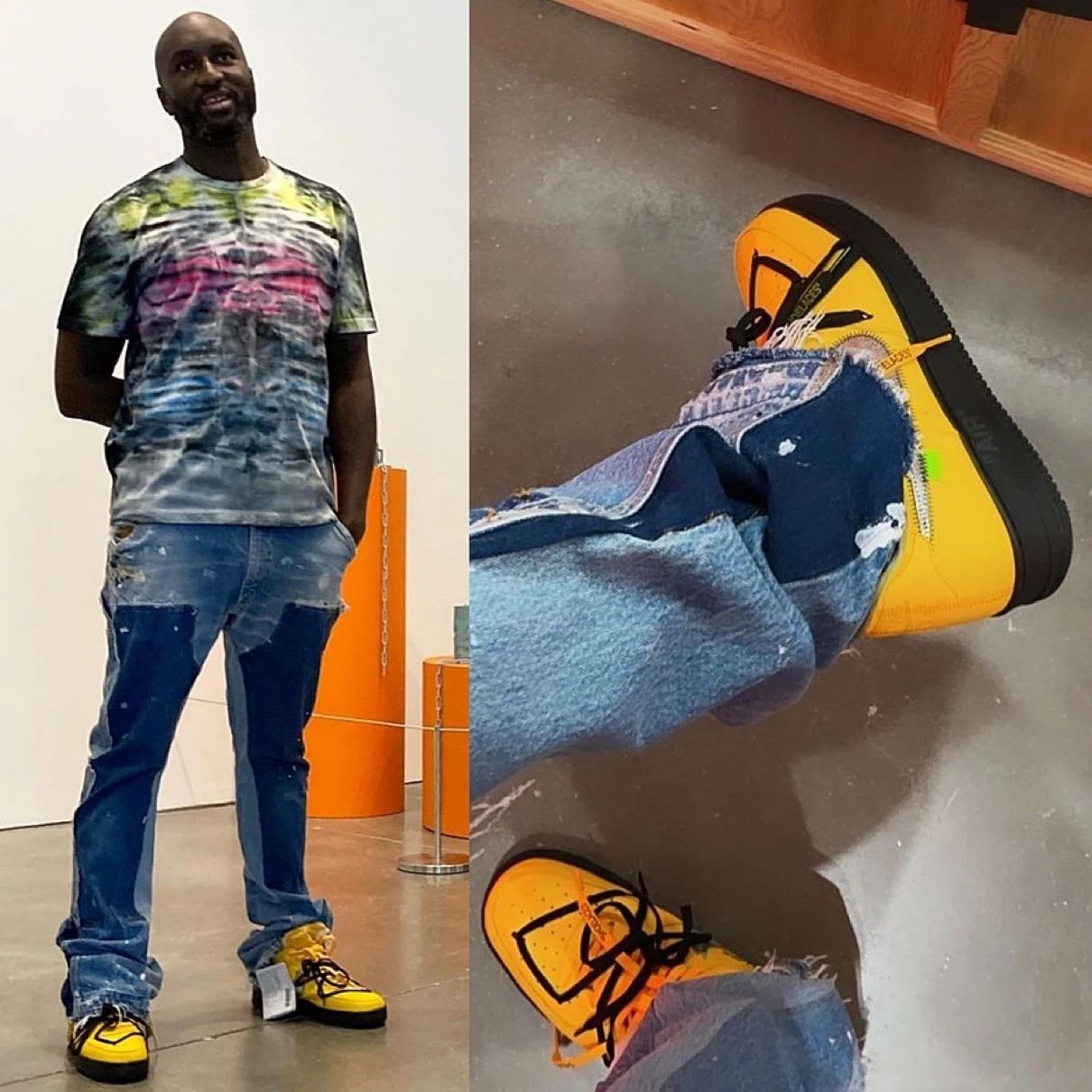 此次的主题为 Figures of Speech,Virgil 上脚的鞋款正是艺术馆特别版的黑色外底 OFF-WHITE x Nike Air Force 1 Low。