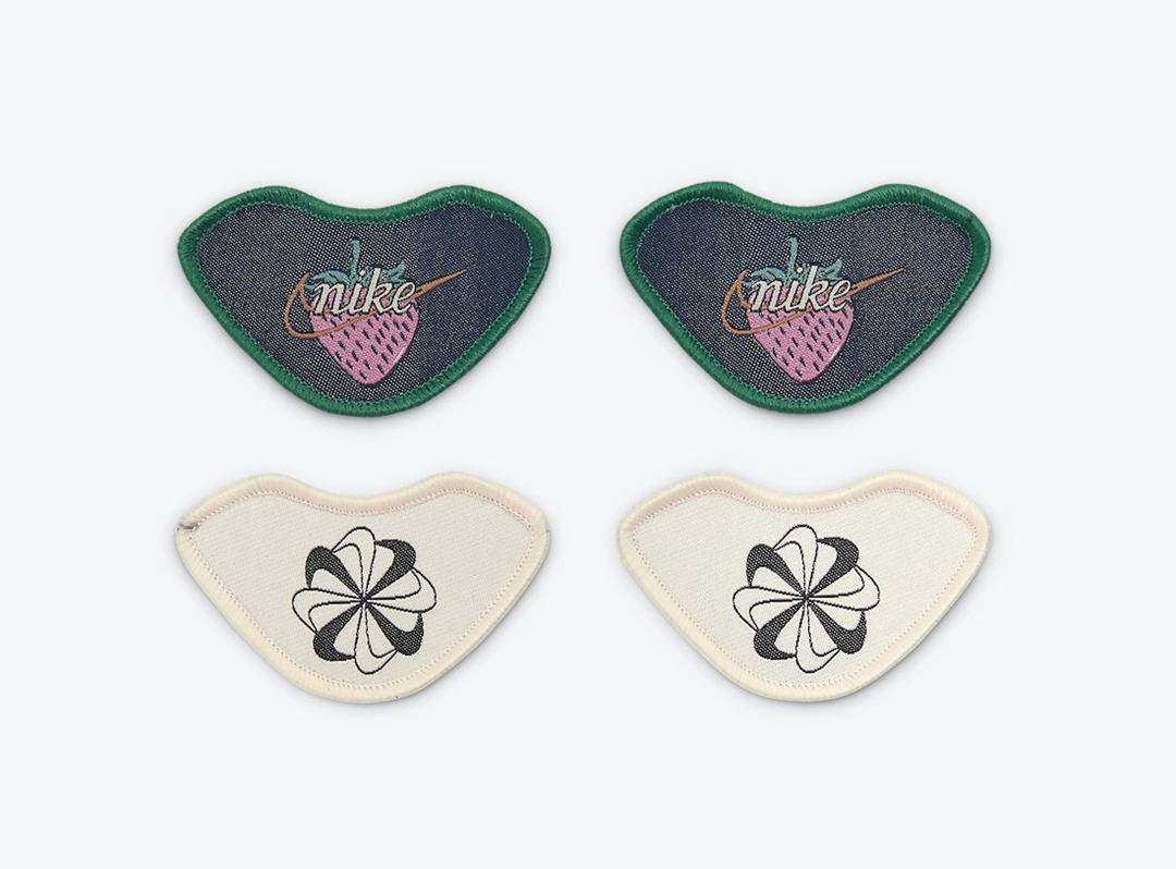 值得一提的是后跟处还带有魔术贴设计,并随鞋附赠了两副魔术贴,分别点缀有回收系列 Logo 和草莓图案,最重要的是还可以自行更换打造专属于你的特别鞋款。