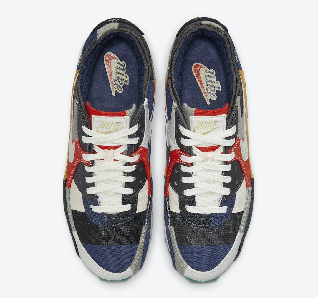 全新的 Air Max 90 采用了包括灯芯绒、翻毛皮、蝉翼尼龙、帆布等超多材质拼接而成,也呈现出了极富解构美学的个性新品。
