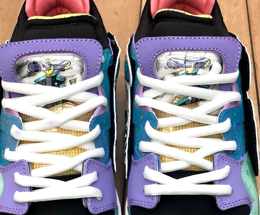 其中关注度最高的自然是本次的联名惟吾PRO,不仅鞋身色彩缤纷清爽,更注入幻彩闪卡暗藏涂鸦细节。