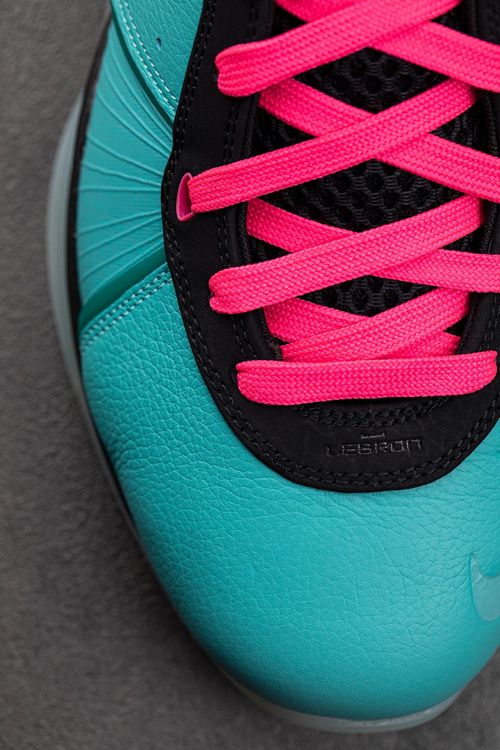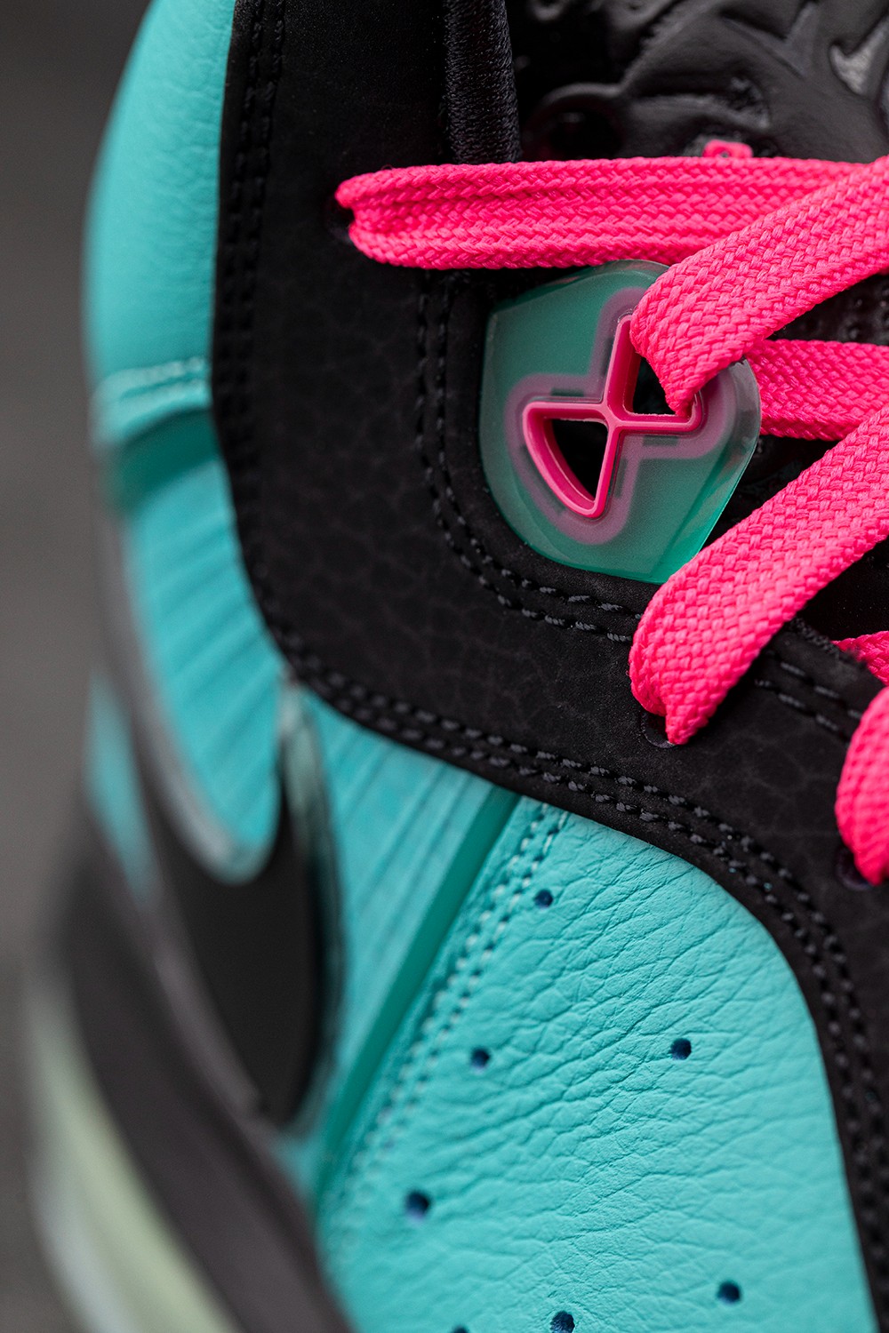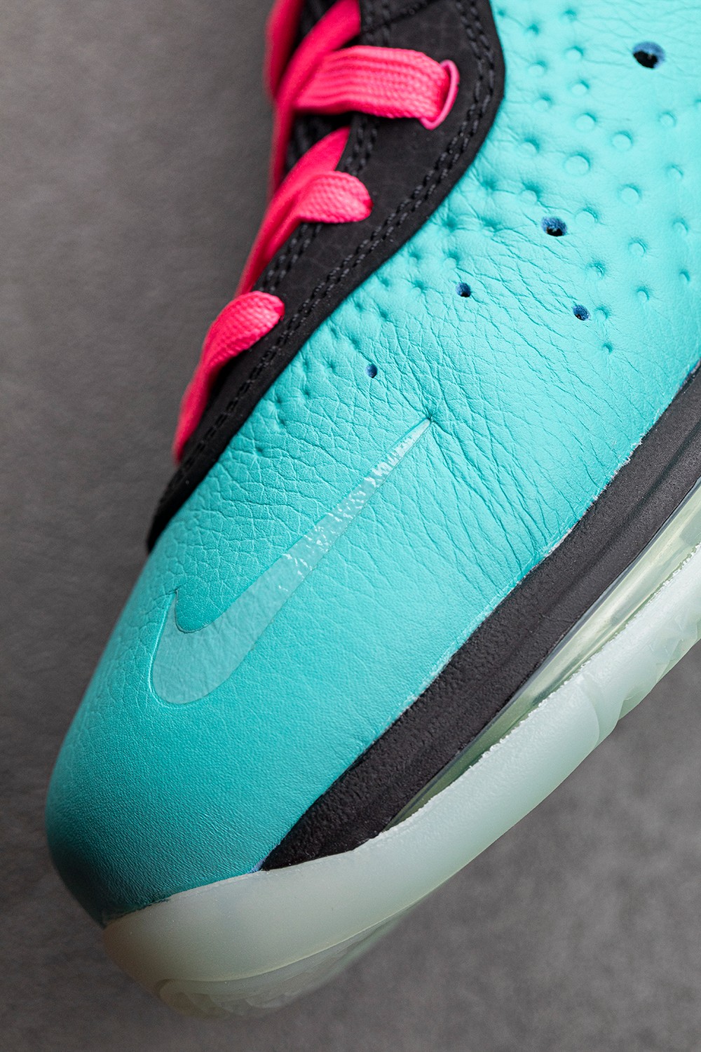 鞋面以湖蓝色为主调,让人联想到迈阿密这座海滨城市的气息。